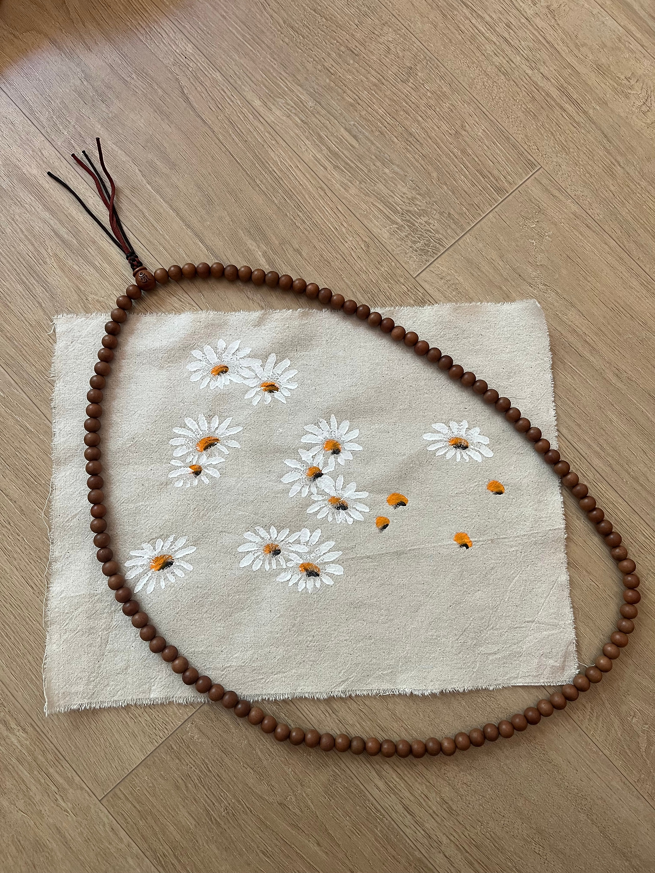 광목천에 구절초도 그려보고, 염주 만들기도 했다.