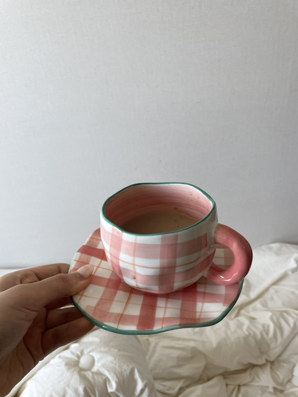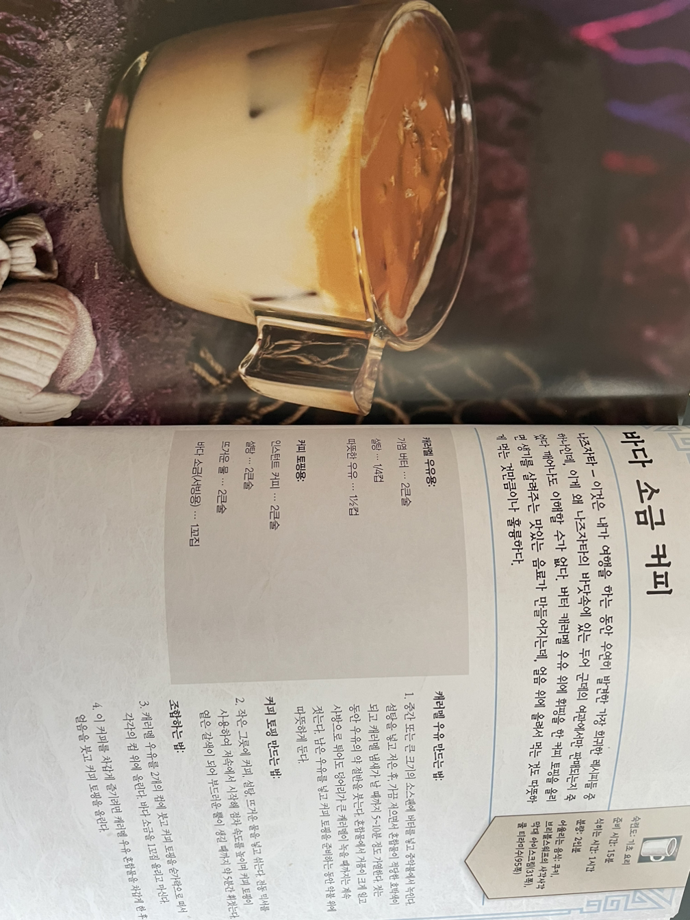 커피에 고소한 두유냄새가 적절히 섞여서 주방 안을 가득 채운다. 이제 된 걸까? 싶을 때 예쁜 머그컵을 꺼내서 따르면 된다! 아이스 버전으로 얼음을 넣어 만들어 보았지만 확실히 계핏가루와 짭짤한 소금향을 잘 느끼려면 뜨거운 바다 소금 커피를 만드는 것이 맛나다.