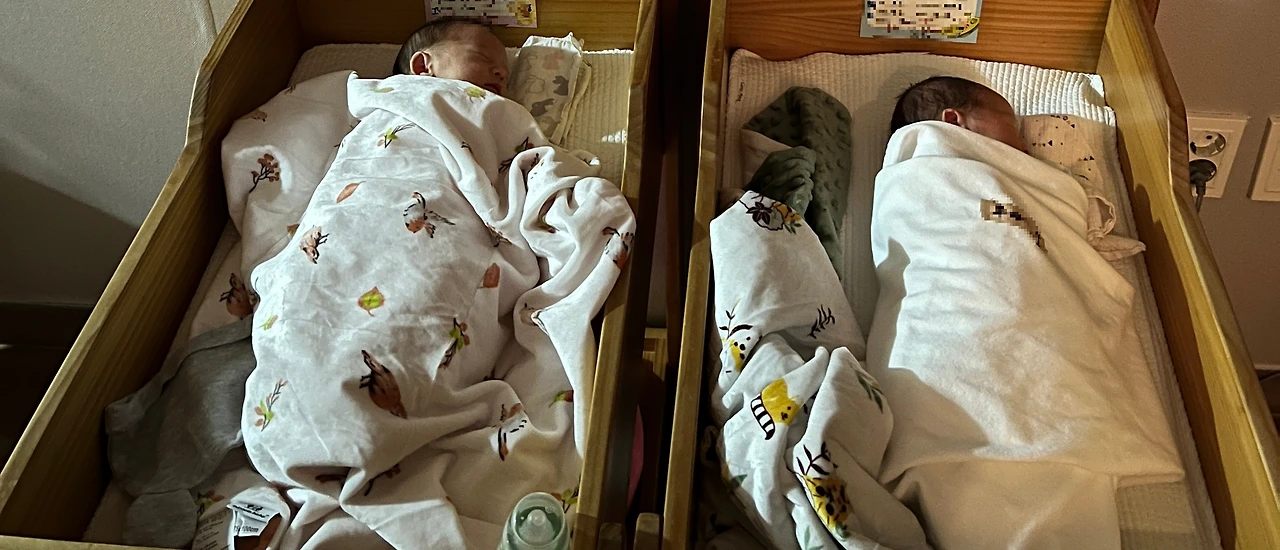 저녁 6시부터 9시 까지는 모자동실 시간이었다. 쌍둥이가 갑자기 '동시에 배가 고파서 울면 어떡하지?'라는 염려가 있었다. 집에서 5분 거리에 있는 산후조리원을 고른 이유도 남편이 자유롭게 왔다 갔다 할 수 있도록 하기 위함이었다. 첫째 둘째를 재우고 시부모님과 함께 집에 남겨둔 뒤, 남편은 조리원으로 저녁 6시에 퇴근을 했다. 6시부터 9시까지 신생아실을 소독 청소하는 시간이라 아기들이 모두 방으로 보내지는데 그 시간이 매우 소중했다. 아이들 사진도 찍고 수유도 하고 같이 시간을 보냈다. 그래도 신생아는 거의 대부분 잠을 자기 때문에 큰 문제가 없었다. 틈틈히 남편과 아기들이 캥거루 케어 시간을 가졌다.