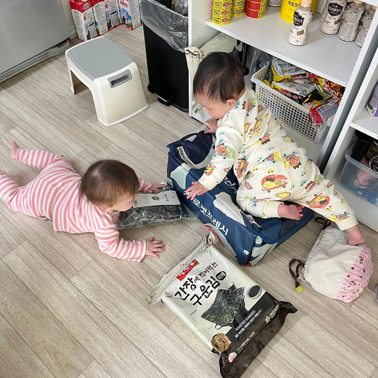 선둥이는 안전한 곳에서 안전한 속도로 노는 반면, 후둥이는 잡고 서고 뒹굴고 하다 보니 더 많이 다치고 더 많이 먹고 더 많이 잔다. 이렇게 한날한시에 태어난 아이도 서로 완전히 다른 것을 보면 너무나 재밌다.