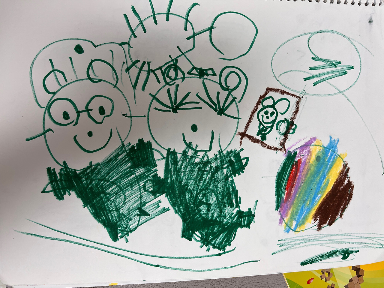 물론 혼자 그림을 그리게 하기 이전에 엄마는 아이에게 어떻게 그림을 그리는 것인지, 그림 그리는 도구들을 어떻게 사용하는 것 인치 충분히 함께 즐겨야 가능하다. 자신의 상상을 도화지에 펼치게 되었다.