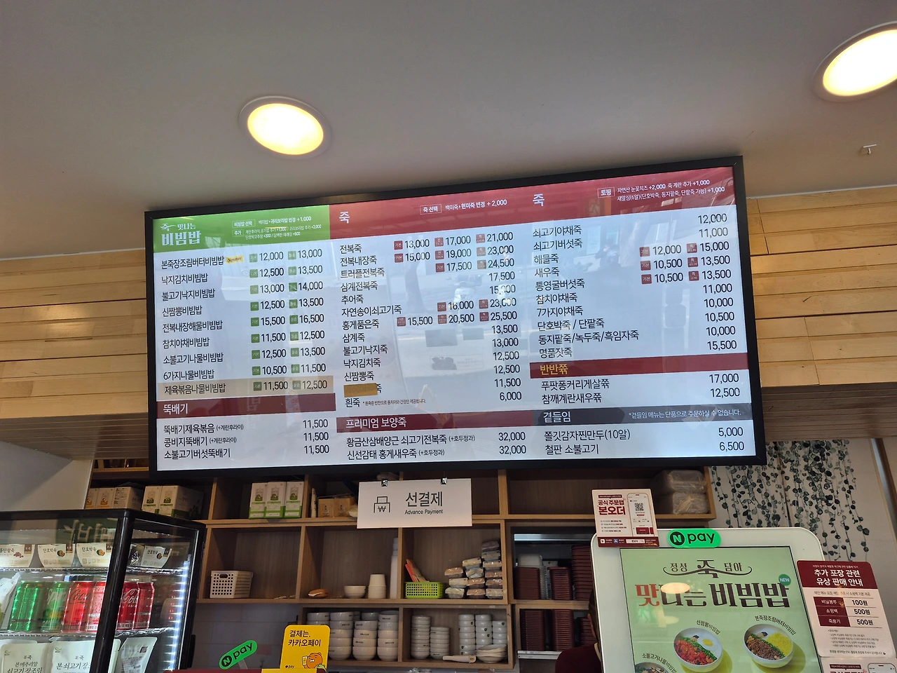 메뉴는 다양하다. 죽 외에 비빔밥, 뚝배기도 있다. 취향에 따라 먹어도 될 듯하다. 치과에서 7개 발치해서 고운죽을 먹으라고 난 선택여지 없이 그냥 쇠고기죽으로 골랐다.