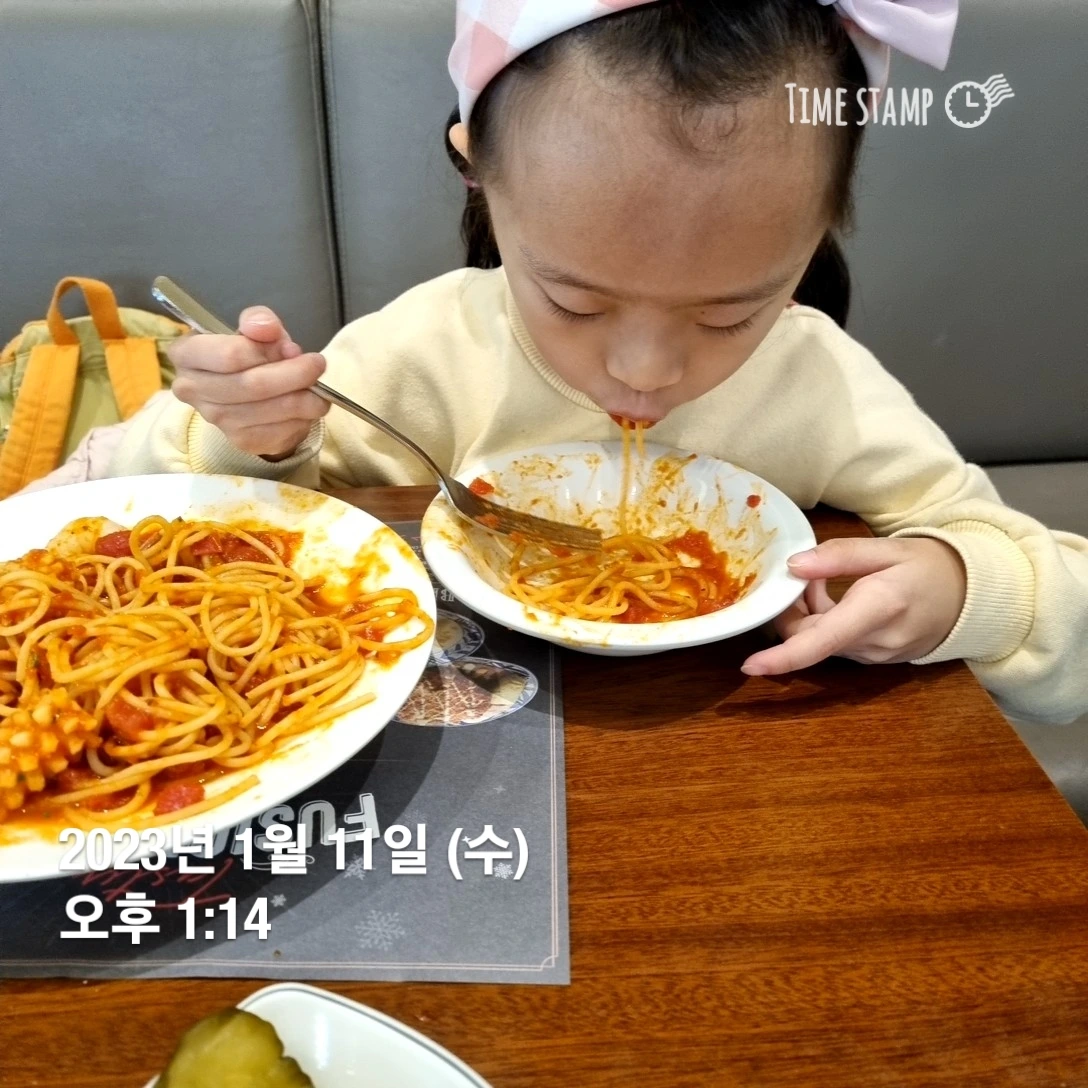 셀프로 티켓 받고 수화물은 2시 30분부터 하라고 한다. 그때는 점심시간이라 수화물 부치기 전에 아이가 좋아하는 스파게티를 먹으러 갔다.