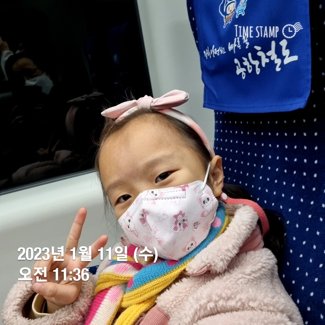 당일날 리무진 버스를 타려다가 아이가 멀미할까 봐 전철 타기로 했다. 서울역에서 내려 공항철도 가는 길에 일반열차로 갈지 직통열차를 탈지 고민하다가 10분 후에 직통열차가 있다 하여 바로 앱으로 예약하여 아슬아슬하게 탑승했다.
