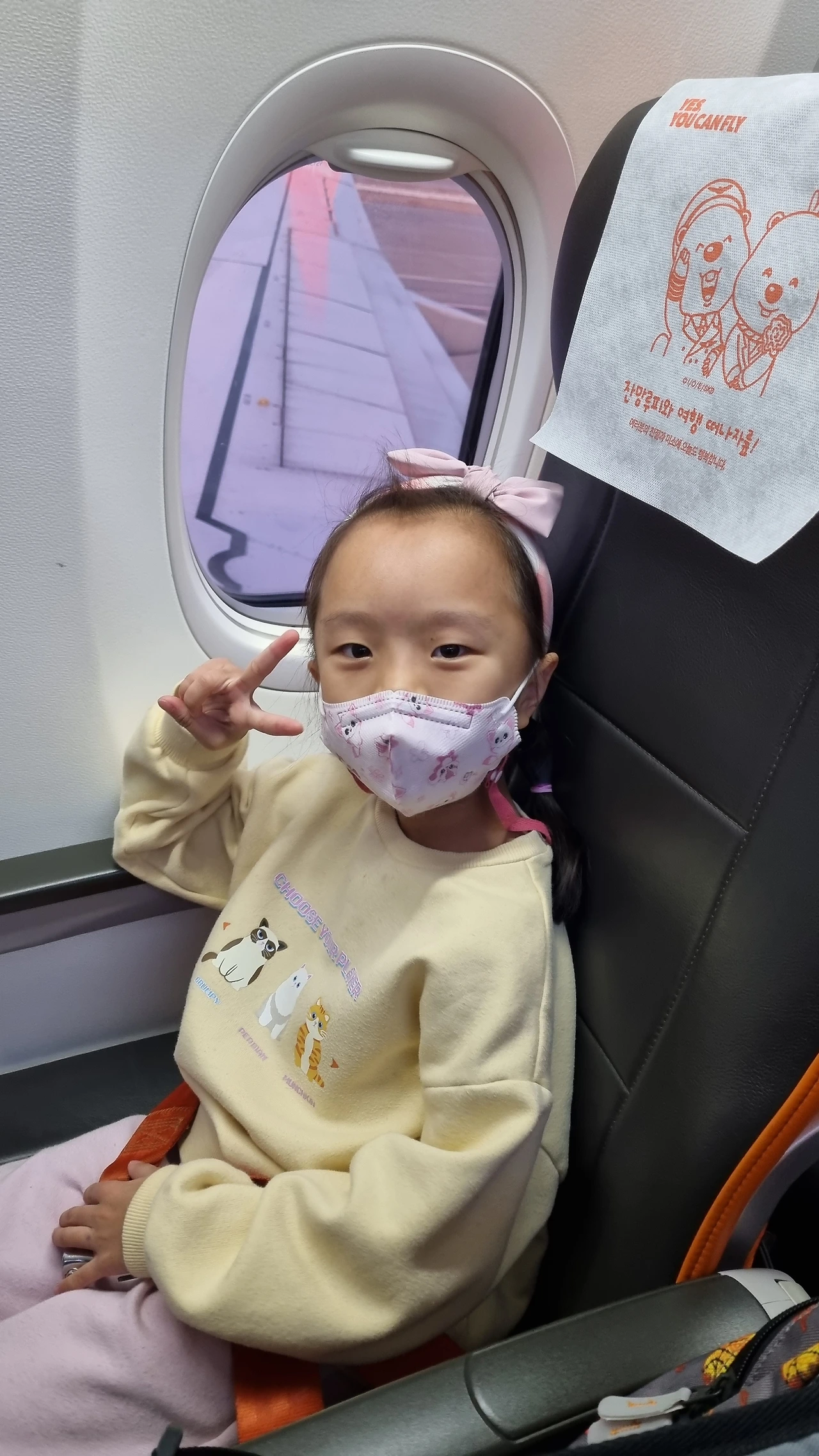 기다리는 동안 치앙마이로 출발하는 비행기를 탔다. 아이는 타자마자 노래를 부른다.