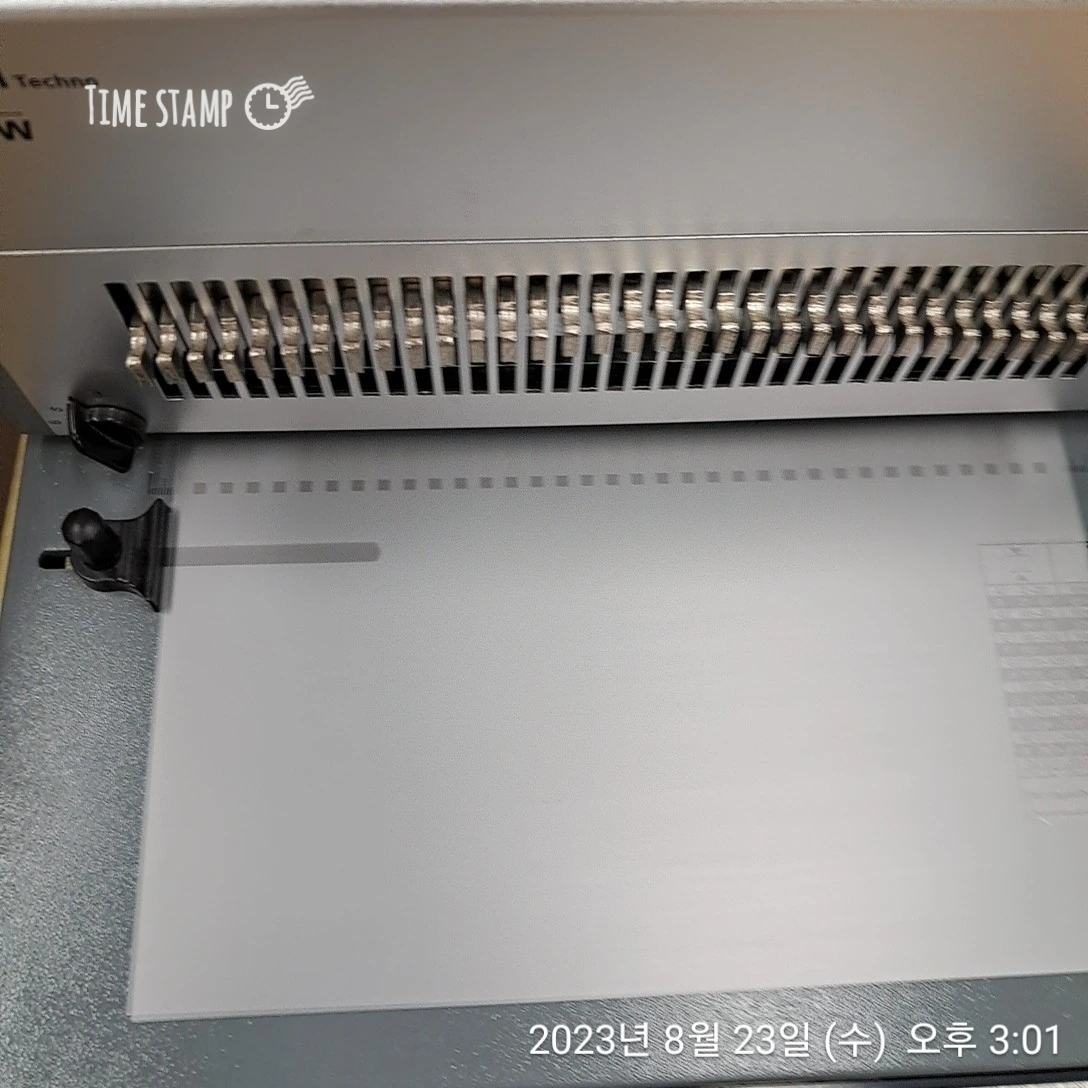 2분 안에 PVC 끼우고 종이 끼우고 다시 PVC 끼웠다. 완성된 제본을 테이블에 올려놓자마다 선생님이 오셨다. 완성된 제본을 보시더니 흡족해하셨다. 선생님이 가신 뒤, 잠시 의자에 털썩 앉았다. 그 10분이 나에게는 피 말리는 작업이었던 거 같다. 마치 미션 임파서블이라는 느낌처럼..