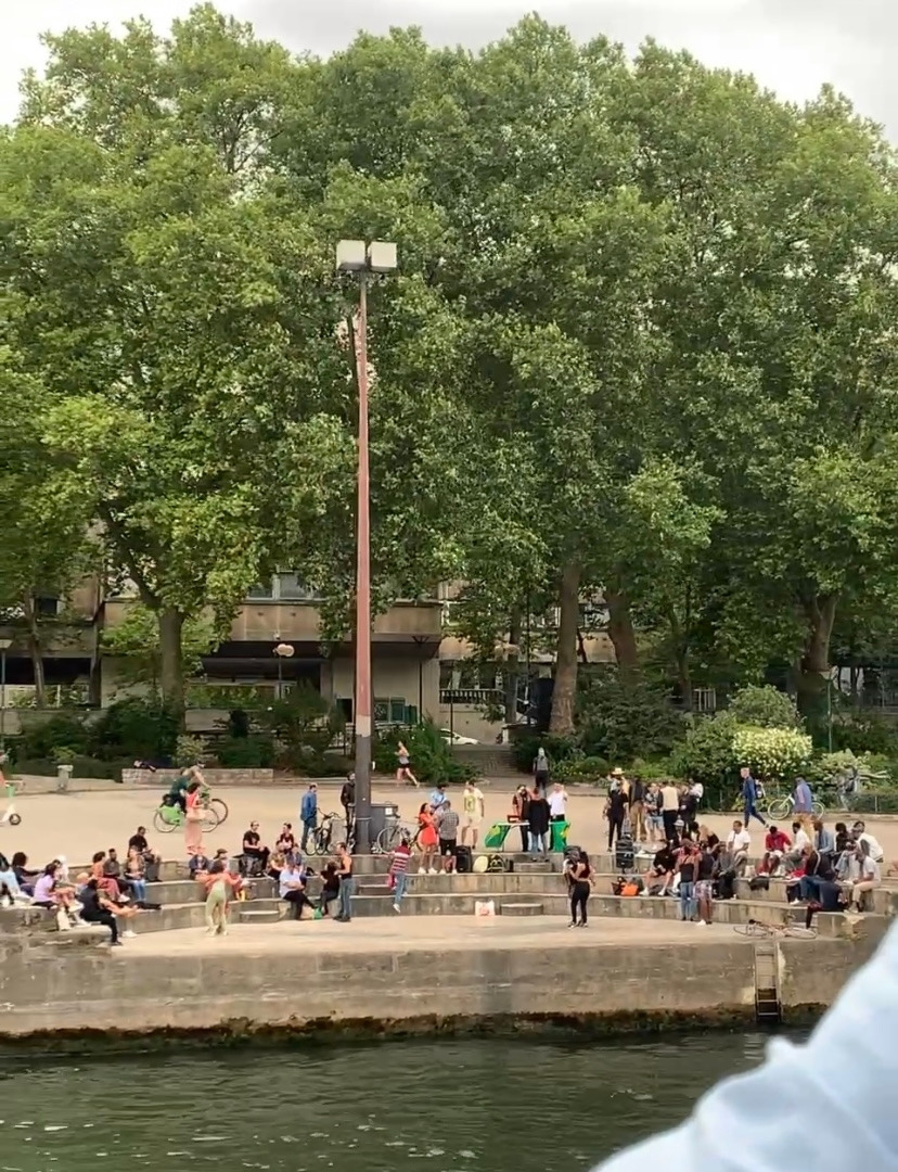 바토 파리지앵의 장점은 바로 단기간에 파리의 중요 관광 명소를 볼 수 있다는 것이었다. 배를 타고 가만히 앉아 있자면 스피커에서는 지금은 어떤 곳을 지나가고 있으며, 이 공간의 의미에 대해 이야기해준다. 에펠탑, 각종 미술관, 다리, 노트르담 성당 등등. 한 시간이라는 압축된 시간 안에 눈으로 도장 찍듯 장소를 볼 수 있었다. 단점은 너무 순식간에 지나친다는 거였지만. 그래도 시간적 여유가 없으면 속전속결로 관광 명소를 보는 것도 나쁘지 않을 것 같다는 생각이 들었다. 바토 파리지앵을 타며 가장 인상 깊었던 것은 어떤 것이냐 묻는다면 특별한 관광 명소가 아닌 센강 가장자리에 걸터앉은 사람들이라 말하고 싶다. 센강 양 옆의 가장자리에는 사람들이 무척 많았다. 어떤 이들은 모여 앉아 맥주 캔을 부딪혔고, 어떤 이들은 호화로운 선상 위에서 파티를 즐기고 있었다.