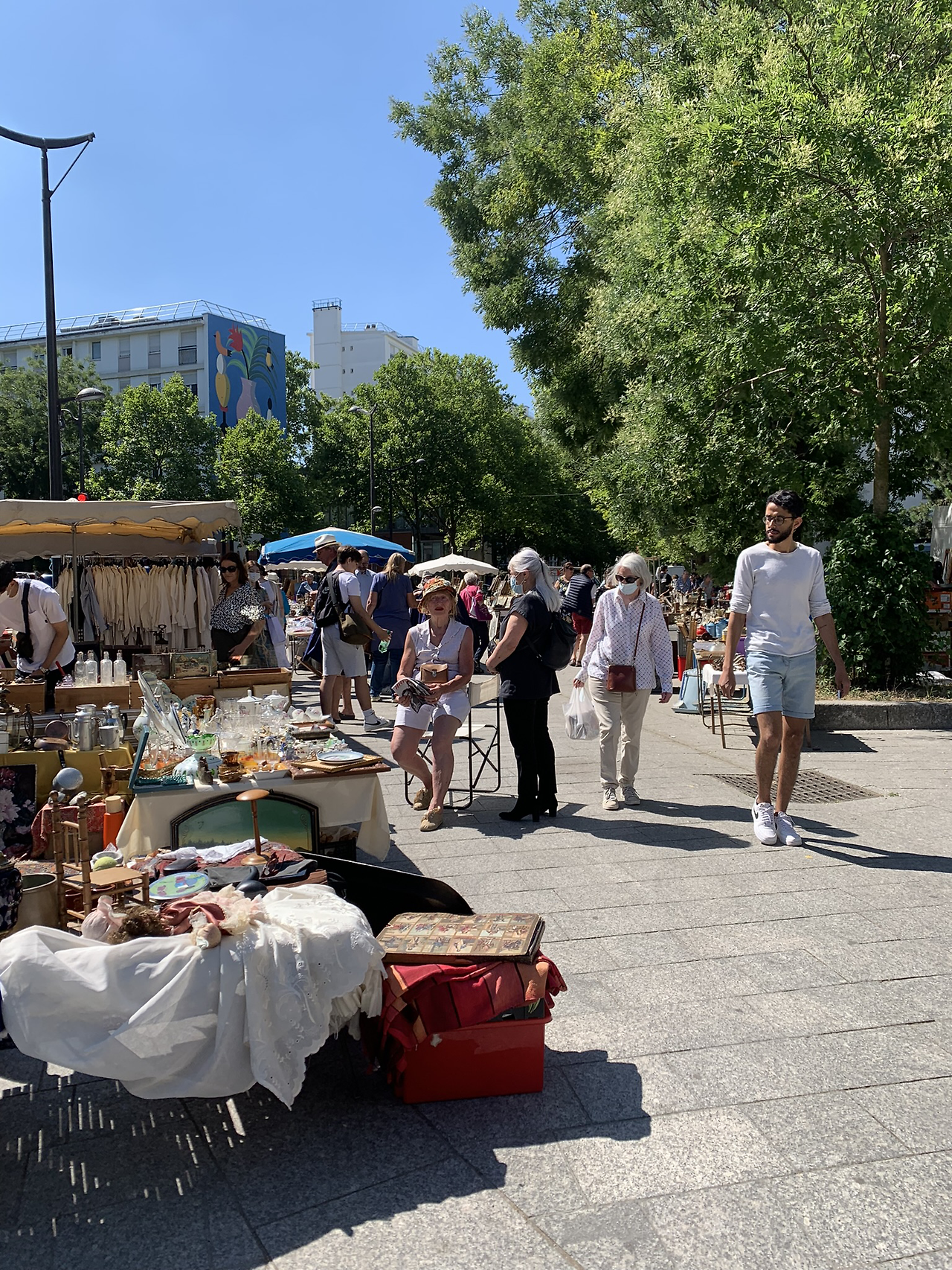 느지막이 기상한 우리는 모든 채비를 마쳤다. 전날 7월의 파리 햇살에 뜨겁게 데인 우리는 경각심을 가지고 온몸에 가지고 있던 선크림을 들이부었다. 선크림 인간이 된 우리가 첫 행선지로 정한 곳은 방브 마켓이었다. 방브 마켓은 주말 오전에만 열리는 빈티지한 제품들로 가득 이루어진 벼룩시장이었다. 유럽의 벼룩시장의 특별함을 고대할 수밖에 없었다. 제제 언니와 내가 한국에서 일정을 짜다 공통적으로 가고 싶다 한 곳 중 한 곳이었다. 숙소에서 도보로 그다지 멀지 않은 트램 정류장으로 향했다. 이동하는 내내 기존 다녔던 길과는 달리 그냥 동네 풍경 하나하나에도 우리는 연신 감탄하고 흥미로워했다. 마켓이 가장 절정일 때는 오전 열한 시 무렵이라 했다. 이미 열 한 시는 훌쩍 넘은 시각이었다. 해서 우리는 발걸음을 더욱 빨리 했다.