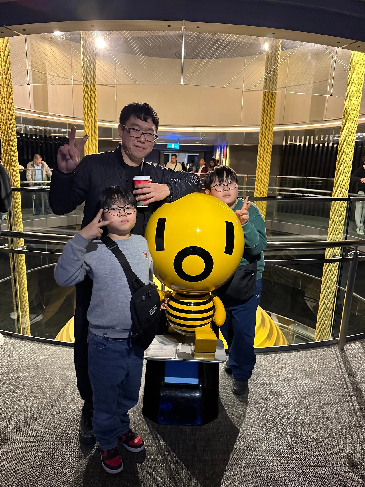 101타워에서는 가족사진도 찍고, 타워 안에 설치된 거대한 추를 보며 지진에도 무너지지 않도록 설계된 구조에 대해 이야기 나눴다.