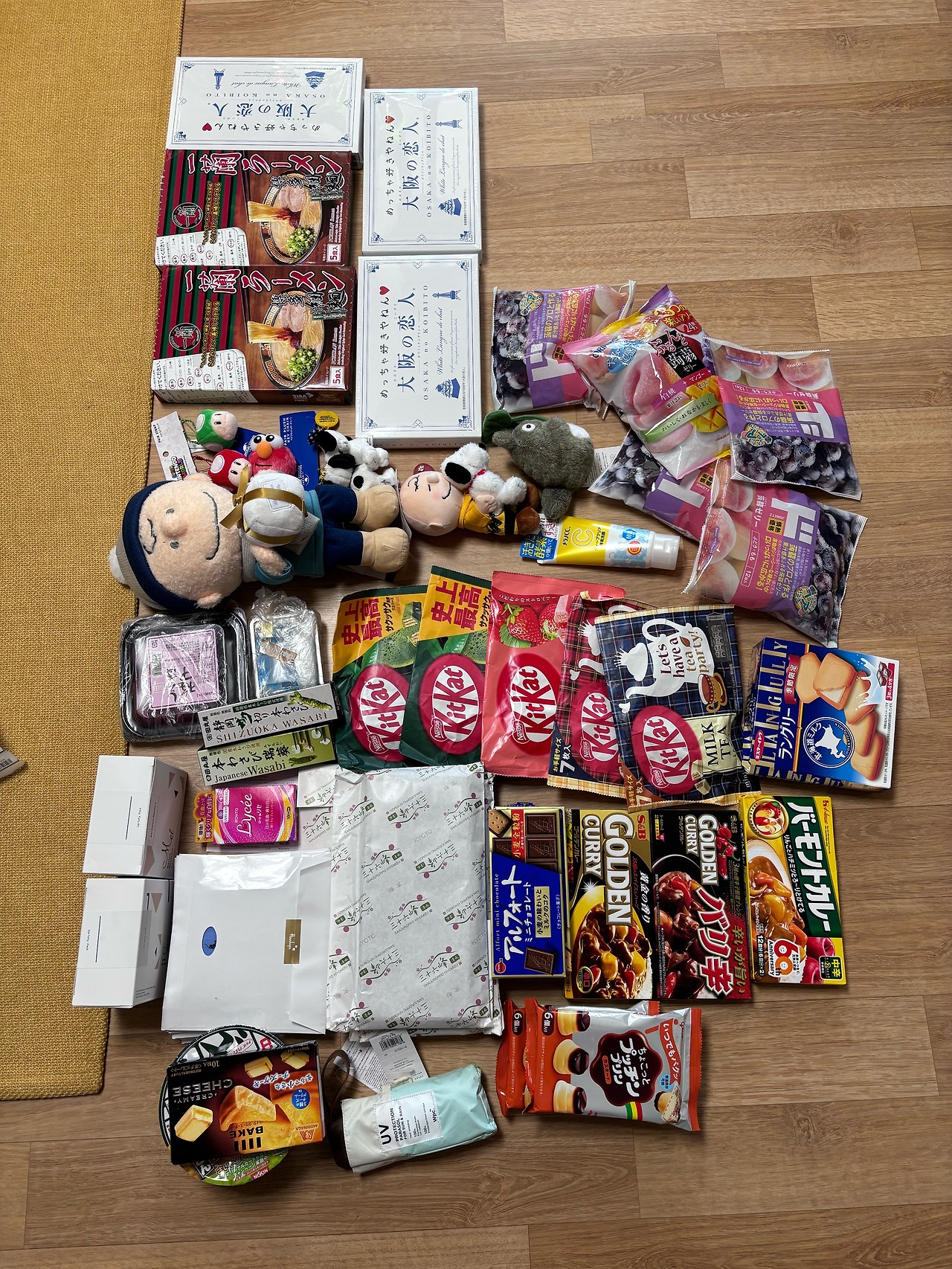 계산을 할 때 두 번 찍는다고 하더라, 수량 제대로 파악해서 결제할 때 정신 똑바로 차려라 라는 말도 들었기에 계산할 때 두 눈을 부릅뜨고 지켜봤다. (다행히 그런 일은 없었다.) 바리바리 싸들고 숙소로 와 캐리어를 정리하니 나름 크다고 자부한 캐리어가 가득 찼다. 이 정도면 이제 돈키호테에서 나름 잘 산거겠지? 의외로 한국에 돌아가 과자들을 정리하고 다 먹고 나니 아쉬움이 남는 게 있어 다음에 일본에 가게 되면 그것들 위주로 사 오기로 다짐하기도 했다.