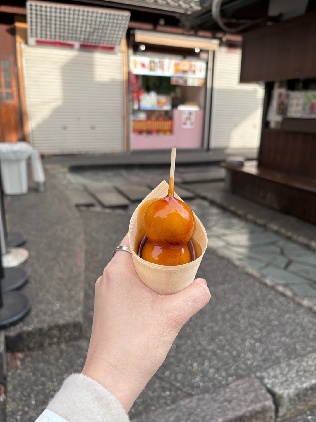 나름 충분히 사진도 많이 찍고 구경도 많이 했단 생각에 하산하기로 했다. 내려오니 이제 올라오는 관광객들이 많아서 이리저리 비켜주면서 왔다. 후후, 일찍 오길 잘했어를 연신 머릿속으로 생각했던 것 같다. 그리고 드디어 너무나도 맛보고 싶었던 당고를 손에 들렸다.