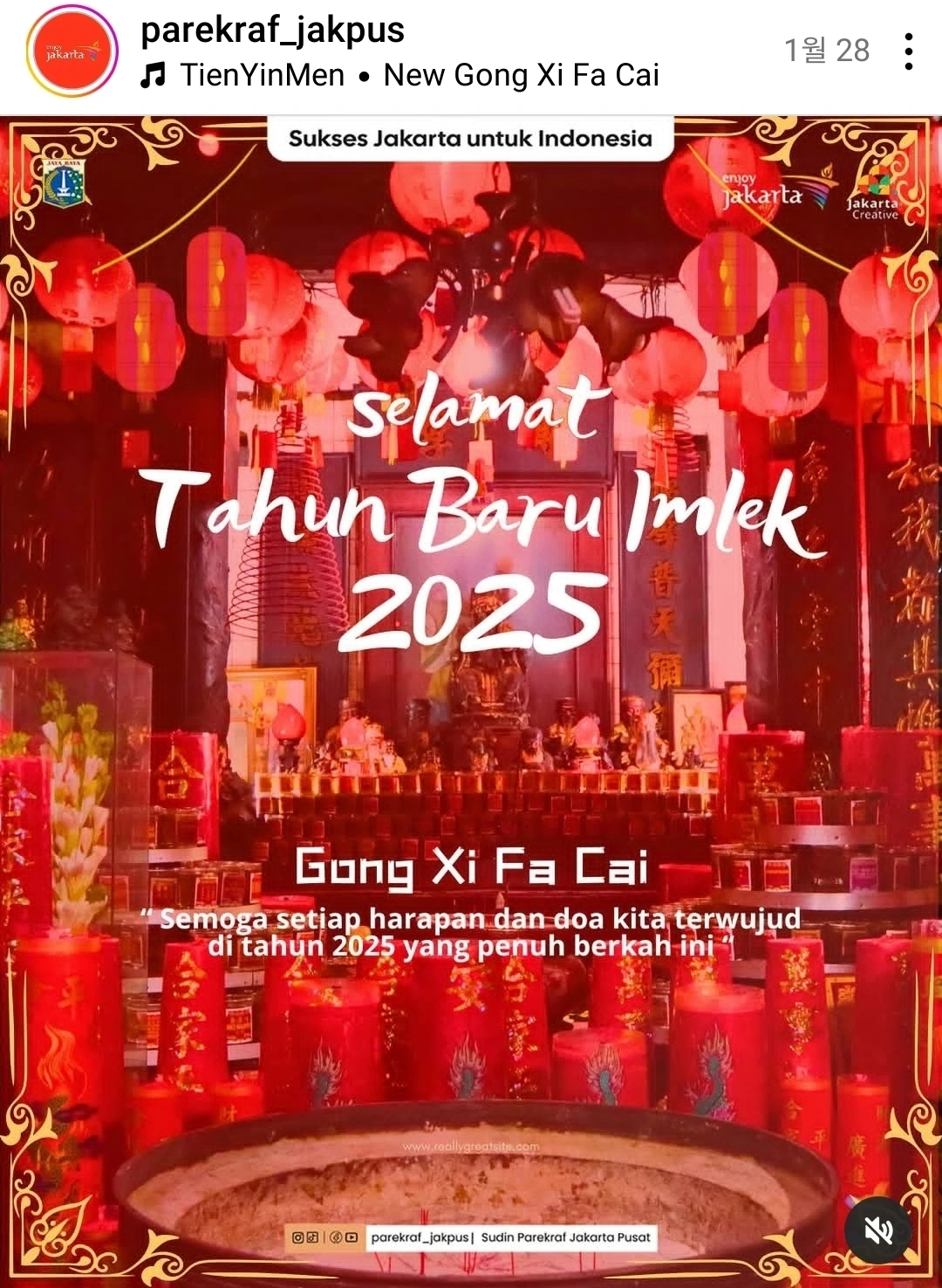 많은 이슬람계 인도네시아인들도 함께 춘절을 즐기고, 쇼핑몰과 시장은 붉은 장식과 세일로 활기를 띤다.