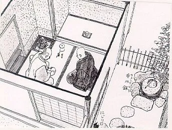 센노 리큐는 작은 족자와 꽃 한 송이가 꽂힌 꽃병 외엔 아무런 장식이 없는 수수한 다다미 두 장 짜리 다실을 설계하였다. 허리를 굽혀야 들어갈 수 있는 다실은, 센노 리큐가 완성한 와비차(侘茶, 청명하고 적막한 마음의 상태를 강조) 전통의 정신과 맞닿아 있다. 그가 꾸민 다실 중 유일하게 현존하는 초가집 다이안은 본래 도요토미 히데요시를 위해 야마자키에 만든 것이었으나 이후 오야마자키의 묘키안으로 옮겨진 것이다. 이렇게 간단하게 다실을 꾸미는 전통으로 일본인들이 추구하는 다완 역시 화려함보다는 소박한 것이었다. 임진왜란 이후 일본으로 전해진 조선의 막사발이 다완으로 사용되며 일본인들에게 큰 인기를 얻었던 것이 이를 뒷받침해준다.