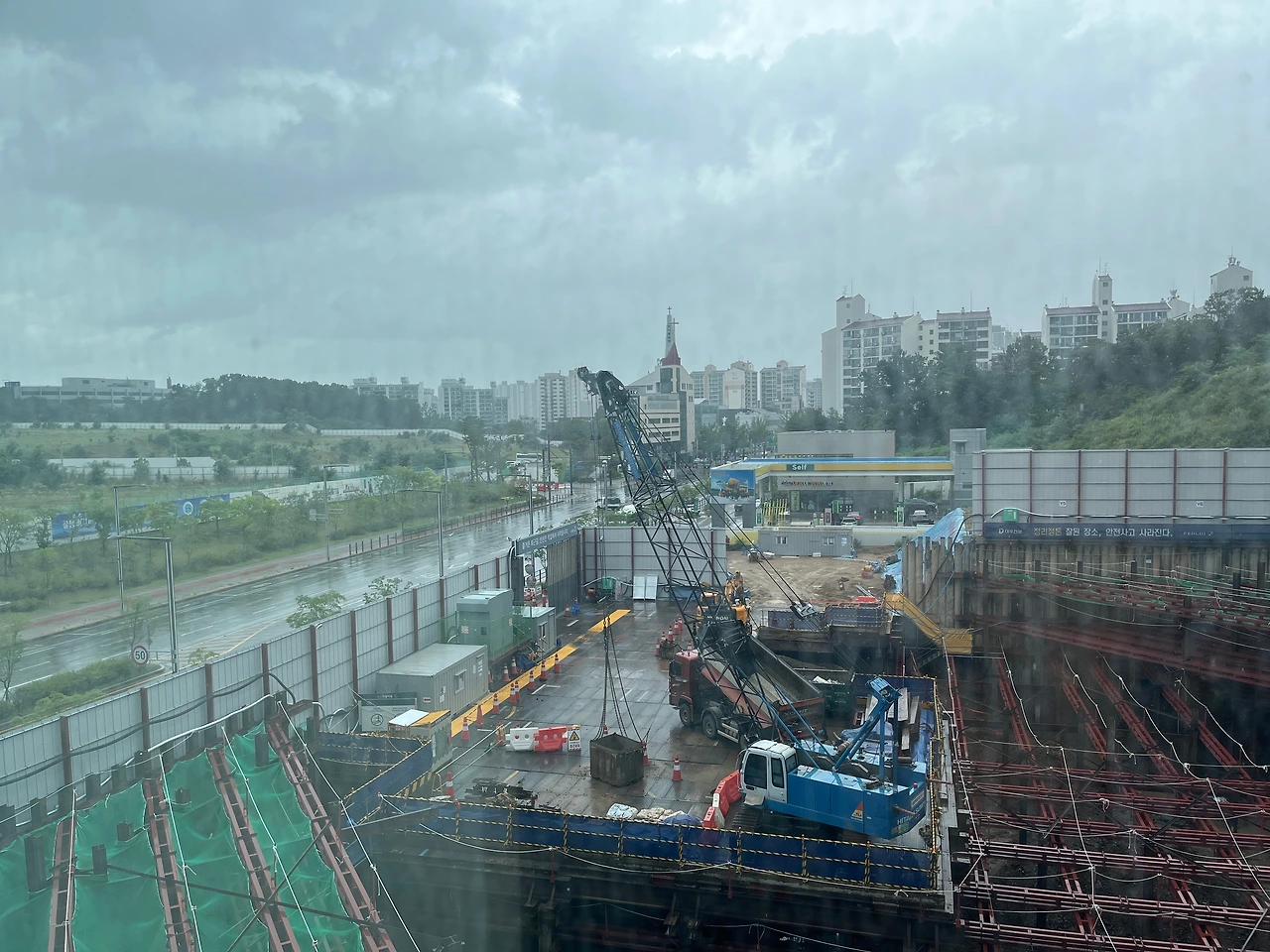 건설이 되기 전엔 풍경이 좋앗는데 이제 이건물이 다 지어지면 눈앞을 가리겟지. 비가오는지 눈이 오는지만 알수 있어도 좋겟지