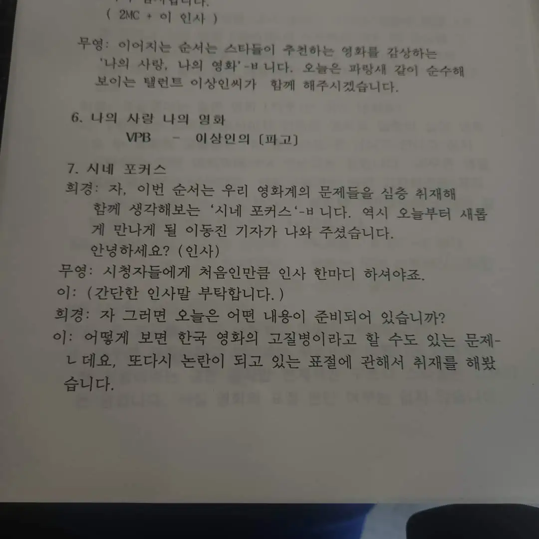 말 그대로 영화정보 프로그램이었다. 신작도 소개하고, 촬영 현장에 직접 가서 스케치와 인터뷰도 해오고, 영화계 이슈도 짚어보고... 나름 한 시간을 꽉 채웠다. 일주일에 한 번 방송되지만, 작가 2명에 피디 4명인 단출한 팀이라 늘 바빴다. 그럼에도 불구하고 내게 이 프로그램은 특별했다. ‘시네 포커스’에서 영화계 여러 사안이나 쟁점들을 깊이 있게 다루면서 꽤나 많은 공부를 했다. 덕분에 부산, 전주, 부천 등등에서 열리는 국제 영화제에도 몇 년 동안 빠지지 않고 갔다. 당시 DCN은 아카데미 영화상을 생중계했는데, <출동 영화특급>을 하는 덕에 생중계 대본도 쓸 수 있었다. 무엇보다 많은 영화계 사람들을 <출동 영화특급>을 통해서 만났다.