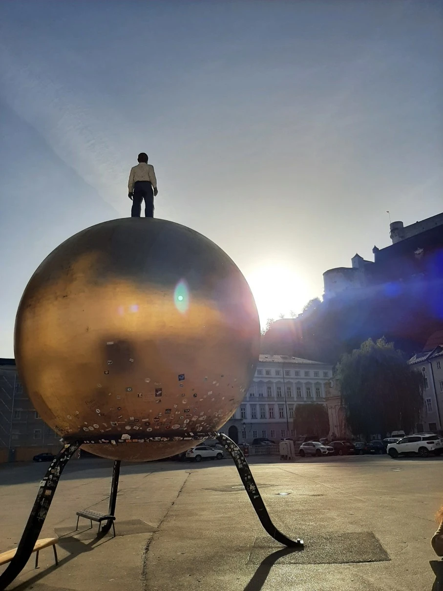 쇼핑 말고 그다지 큰 할 일이 없던 할슈타트에서 4시간의 자유시간을 주더니, 볼 게 많은 여기선 45분이다. 성에서 내려오자마자 천상 모후의 관을 쓴 성모님을 보고, 구시가지에서 눈요기를 하고, 광장에서 세상의 중심은 나라고 외치는 남자를 만나고, 300년 된 카페 겉만 구경하니 시간이 다 됐다. 심지어 기념품 하나 살 시간조차 없다. 천천히 음미하기란 패키지여행에선 없다. 폐 끼치지 않아야 한대서 패키지여행이라 하니, 내가 꾸물거리면 모두에게 민폐다.