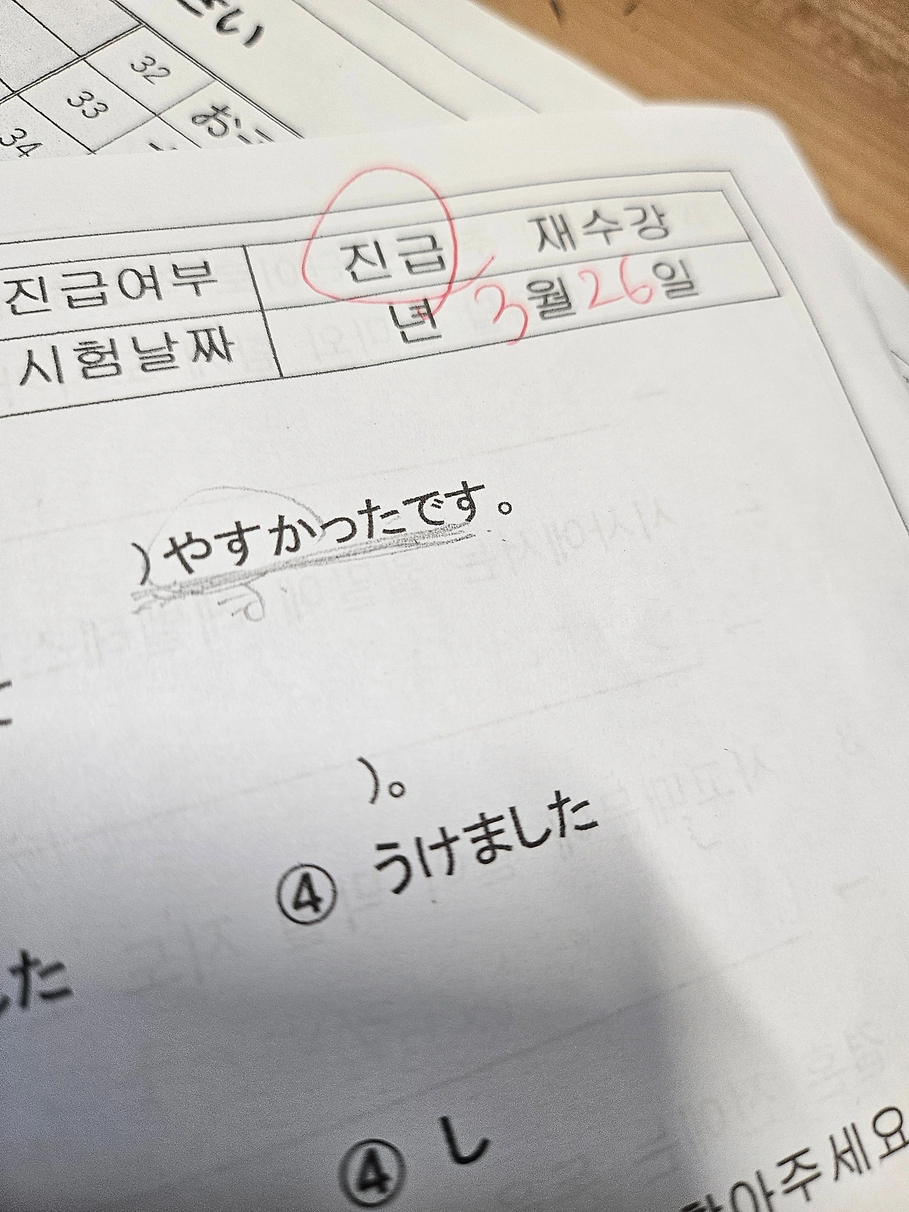 오늘, 한국인 회화반 진급시험이다. 선생님이 늘 지적했듯 단어와 문법은 나름 괜찮았지만 청해가 큰 구멍이다. 그래도 6번의 진급시험을 한 번에 통과했으니 나 스스로를 대견하다고 칭찬한다. 긴장과 설렘으로 시작해서 잠깐 열정을 태우다가 권태와 좌절을 거치며 다시 용기를 낸 3개월 차 일본어 초보. 앞으로도 이런 과정을 반복하고 또 반복하겠지. 다음 달부터 올라가는 원어민 회화반은 조금 천천히 하기로 한다. 슬렁슬렁, 아니 뚜벅뚜벅 나의 일본어 공부는 계속된다.