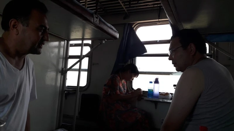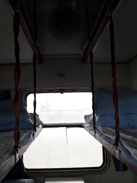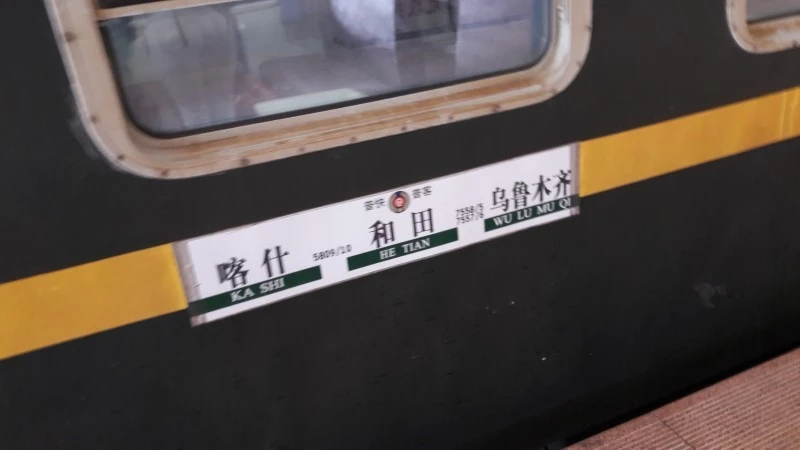 우루무치 발 카슈가르행 열차에 몸을 실었다. 열차 번호 7556. 보통 중국 기차는 알파벳+숫자로 열차 번호가 매겨지는데, 앞의 알파벳은 기차의 등급을 나타낸다. 아무 알파벳도 없는 기차는 가장 낮은 등급인 푸콰이. 카슈가르까지 예상 소요시간은 24시간 55분이지만, 30분 연착되어 출발, 가는 도중에 또 한 시간이 연착되어 총 26시간 반이 걸렸다. 빠른 기차는 17시간 만에도 가지만 가격 차이가 두 배 가까이 난다. 객차 천장의 선풍기는 고장 나서 돌아가지도 않고, 침대 칸에는 난간 대신 끈이 묶여있는 아주 오래된 기차지만, 1500km나 되는 거리를 2만 원도 안 되는 돈으로 데려다준다. 무더운 날 늦은 오후에 출발하는 기차였지만, 역에 오기 전 호스텔에서 샤워 및 용변을 해결하고 아주 가벼운 복장으로 기차에 올랐기에 기분이 제법 상쾌하다. 객차에는 아직 나 밖에 타지 않았는데 기차는 느릿느릿 역을 출발한다.