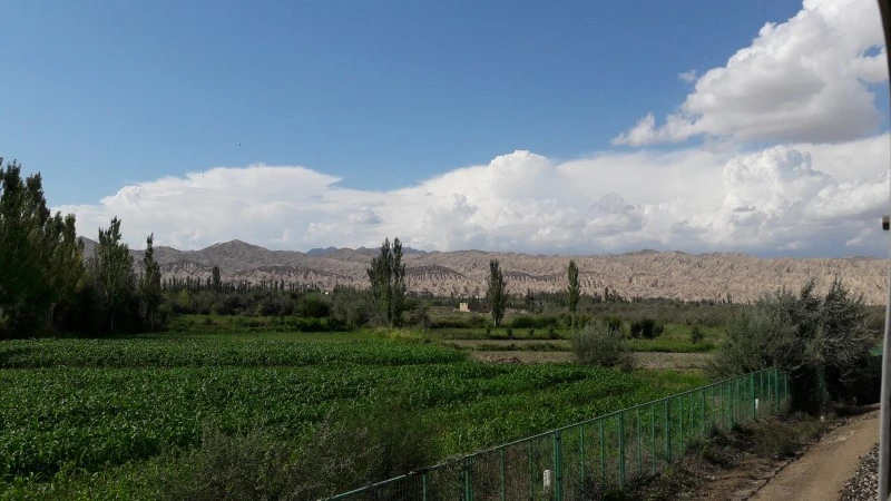 고대 실크로드 천산남로의 서역북도를 따라 이어진 길은 계속 북쪽에 천산산맥을 두고 달린다.