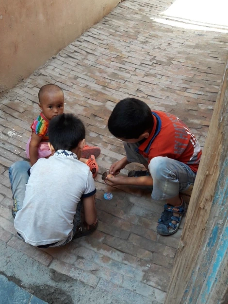 매일 밤 관광객들의 떠들썩한 술자리가 펼쳐지는 호스텔을 나와 그 앞 벤치에 앉아 노트북으로 일기를 썼다. 골목은 골목대로 번잡하다. 고성 대로변에 위치해서 인지 밤늦도록 사람들이 지나다니고 그 시간까지 아이들이 뛰어논다. 몇몇 호기심이 많은 아이들은 내 옆으로 와 이것저것 말을 걸어 댄다. 아이들은 중국어를 못하고 나는 위구르어를 모르니 말이 통할 리 없지만 아이들은 아랑곳 않고 조잘조잘 말을 한다. 겨우 하나 아는 위구르어로 "만 코리야릭(난 한국 사람이야)"이라고 하니 한국이라는 나라는 아직 모르고 내 이름을 소개하는 줄 아는지 한 명씩 돌아가며 자기 이름을 얘기해 준다. 그런 모습이 귀여우면서도 한 편으로는 측은해진다.