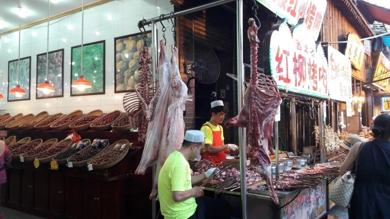 그곳은 내가 기대했던 회족 거리도, 20년, 10년 전의 회족 거리도 분명 아니었다. 다른 지역 웬만큼 유명한 여느 관광지들과 마찬가지로 정비 사업이라는 미명 아래, 깔끔하게 포장된 대로변에 깔끔하게 단장한 점포들이 늘어서 있었다. 같은 회족들이 아닌 이곳에 놀러 온 한족이나 외국 관광객들을 상대로. 마치 종업원들의 흰 빵모자만 은색 장신구로 바꾸고, 파는 품목만 양꼬치에서 돼지고기 훈제로 바꾸면 여느 묘족 마을 관광지로 바뀔 법한 풍경이었다. 물론 음식값도 결코 싸지 않았고 말이다. 같이 간 친구와 가게의 저 종업원들도 회족 빵모자만 쓴 한족일 거라고 농담 아닌 농담을 주고받으며 10원짜리 양꼬치를 뜯었다(물론 맛은 있었다).