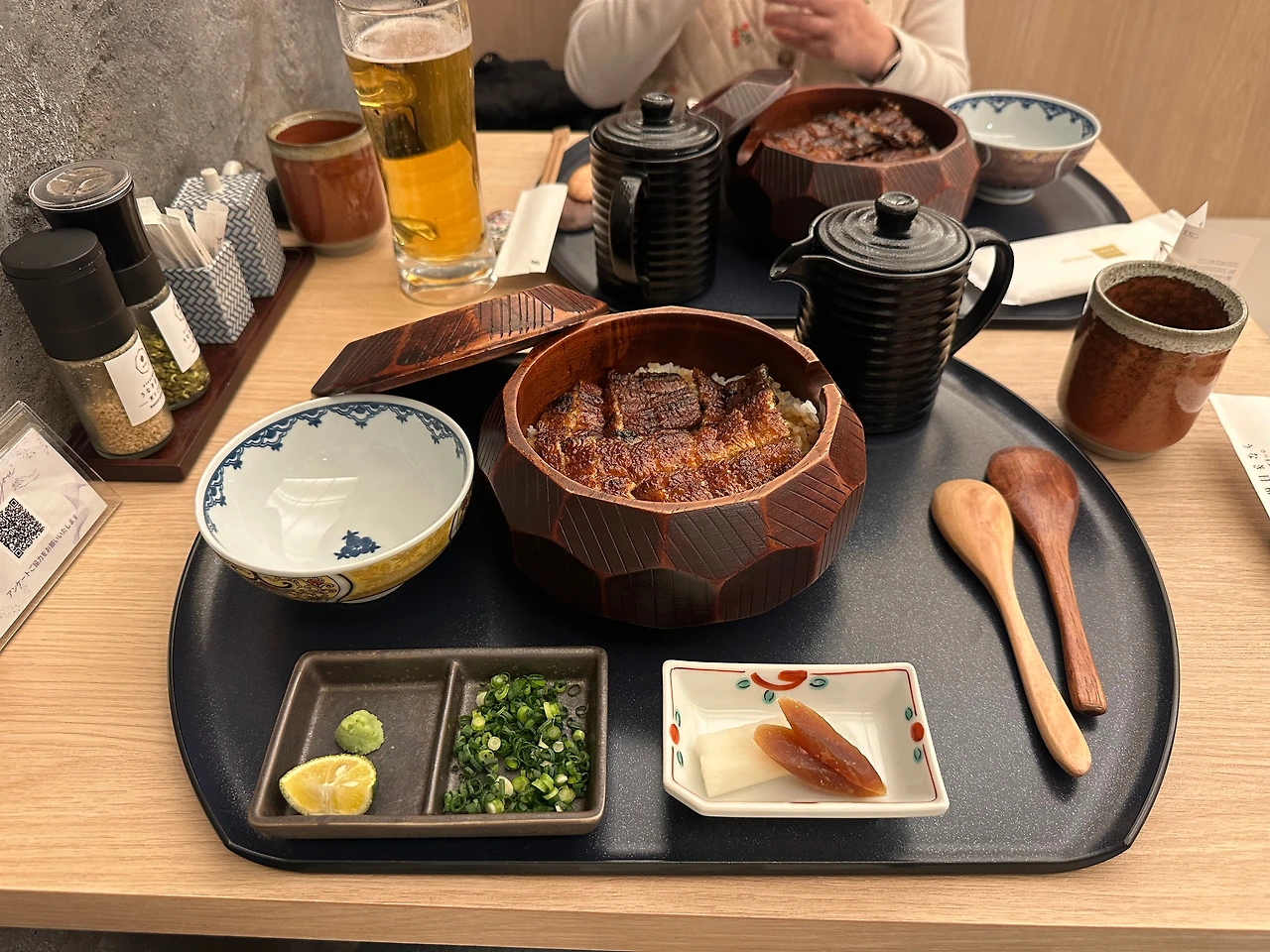 공항에서 딸아이를 만나서 온갖 수속을 받고 2시간 비행 끝에 나고야 추부공항에 도착한다. 공항 창문으로 비치는 아름다운 노을이 우리의 방문을 환영해 주는 듯하다. JR을 타고 숙소로 이동해서 짐을 놓고 나고야 전통 음식인 장어덮밥(히츠마부시)을 먹으러 간다.