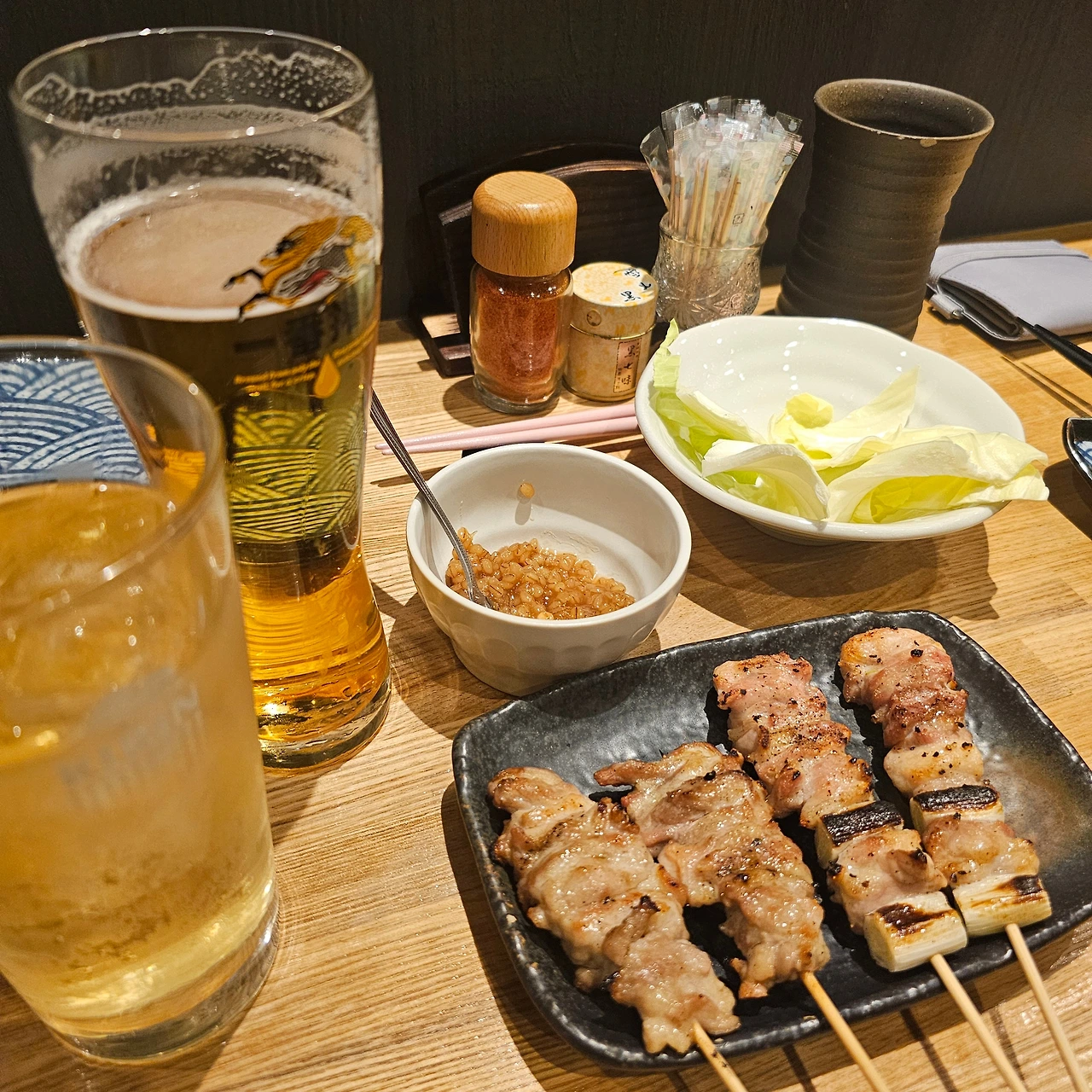 꼬치구이를 전문으로 하는 곳이었는데 잘생긴 주인장이 눈앞에서 꼬치를 구워주면 바로 앞 다찌에 앉아 먹는 구조였다. 꼬치구이를 오마카세로 시켰더니 모두 맛있어서 맥주를 두 잔이나 마셨다.