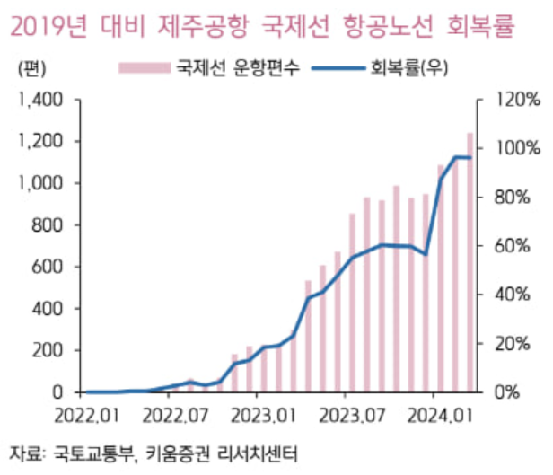 항공노선이 많아지면 잠재적으로 항공 이용객도 늘어나리라고 보고 아래 키움증권 리포트에 올라간 내용으로 관광객의 증가를 대신할 수 있다고 본다.
