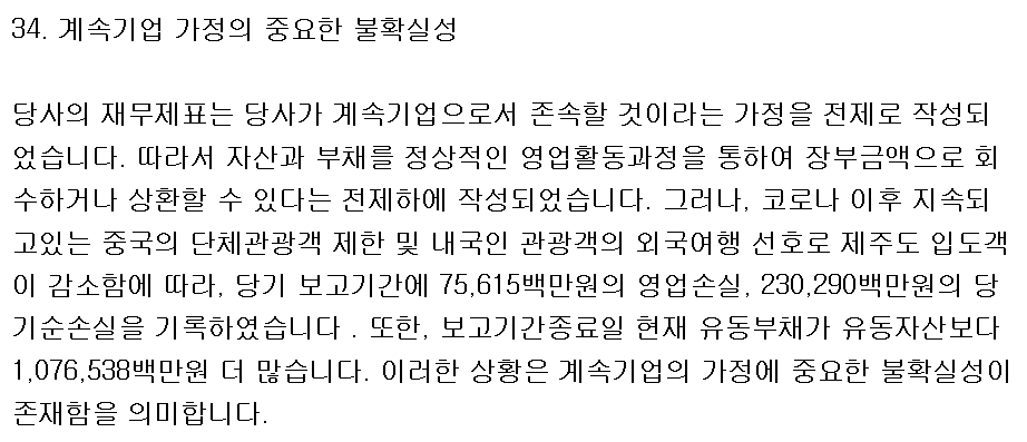 리스크는 롯데관광개발의 막대한 채무 수준이다. 솔직히 부채 수준을 보면 도저히 매수할 수가 없는 기업이다. 심지어 24년 3월 제출된 회계법인의 감사보고서에는 계속기업에 대한 의문까지 표시되고 있다. 최근 진행된 롯데관광개발의 자산 재평가도 자본 잠식에 빠지는 기업이라는 오명을 피하기 위한 조치로 볼 수 있다.