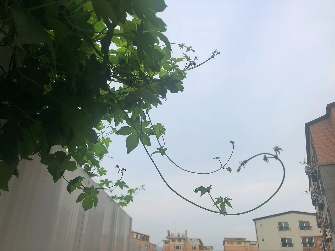 주차장 벽을 넘은 덩굴이 어여쁜 곡선을 그리고 있었다. 자주 지나다니던 길이었는데도 이런 덩굴이 있었는지 전혀 몰랐다. 이 사진의 밑으로는 자동차가 주차되어 있었는데 자동차를 사진 프레임에 넣지 않은 이유는 덩굴에 조금 더 집중하고 싶었기 때문이었다.
