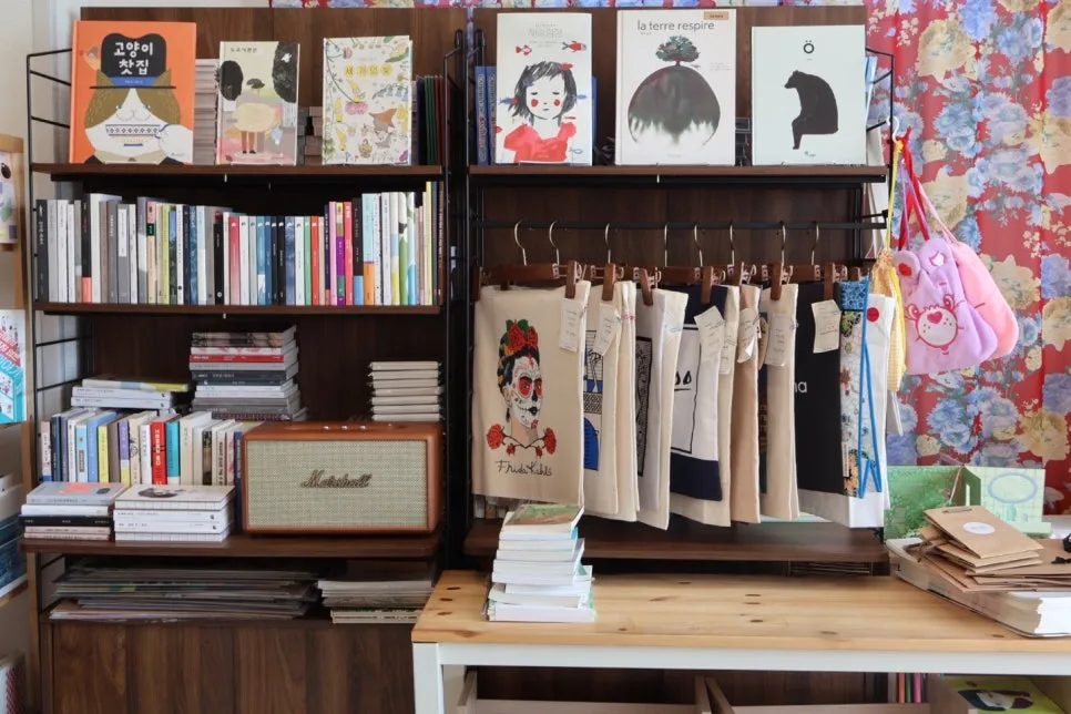 실제로 여행 온 것처럼 다양한 기념품도 있었는데 책을 제외하고 내 눈에 들어온 건 다양한 에코백이었다.