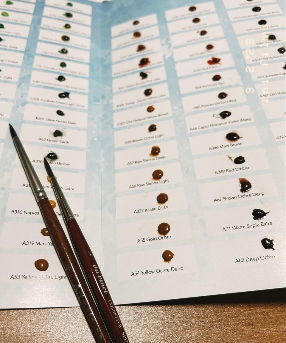 이 물감은 발림성이 부드럽고 안료를 아낌없이 넣은 듯, 발색이 우수해요. 색감이 전체적으로 고급스러운 느낌이고요 작가들의 여러 취향을 골고루 반영한 것 같아요. 구아슈와 비슷한 텍스처도 있었고 흥미로웠습니다. 비용이 아까울 것 같지 않아요.