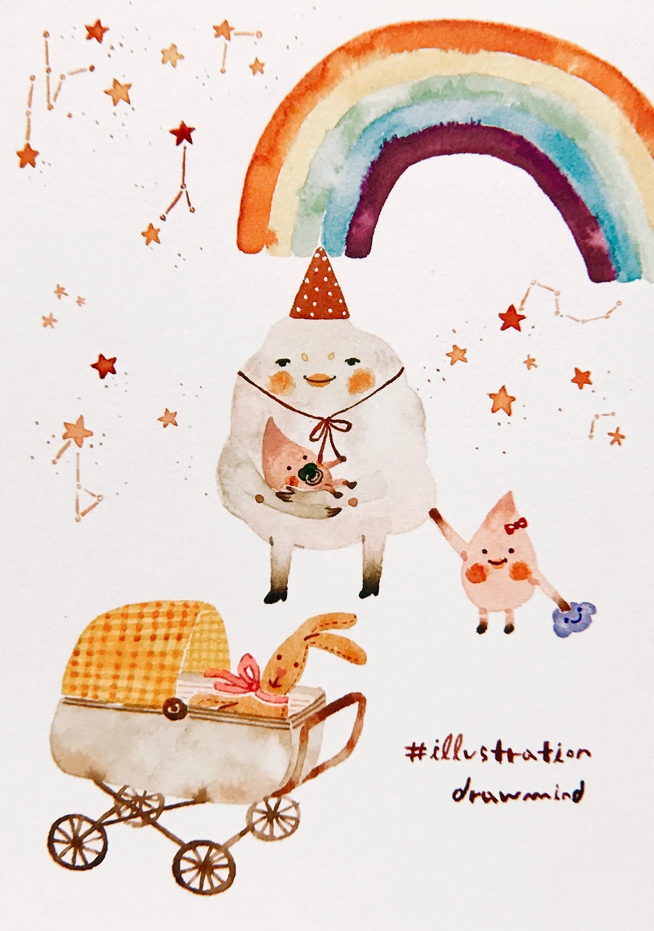 물방울 아기가 름 씨인 엄마와 함께 구 씨인 아빠를 기다리고 있어요. 구 씨가 빨리 오셔야 구름 가족이 완전체가 되는데요. 구름 씨의 가족에게서 느껴지는 따뜻함과 끈끈한 유대감이 부럽네요. 어떤 느낌일까… …