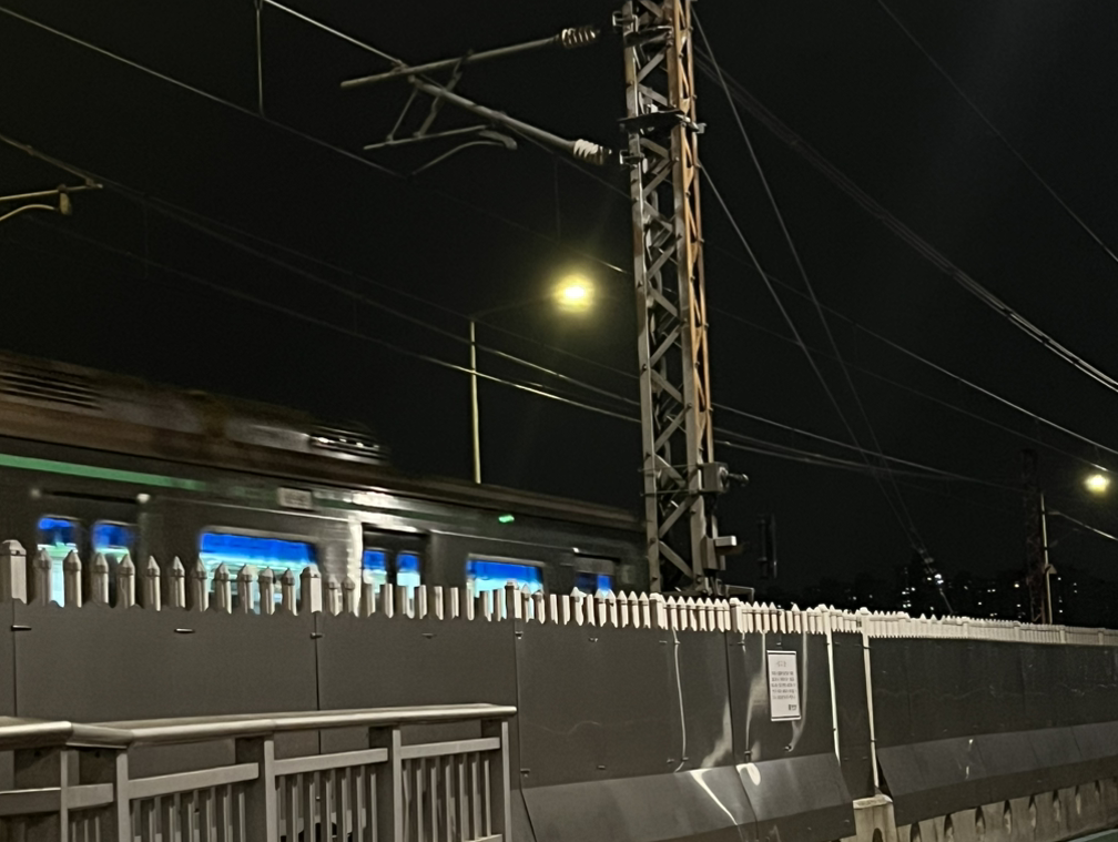 한강 다리를 건너는데 옆에 전철이 막 지나갔다.