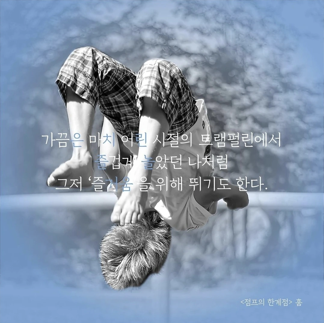 이번 프로젝트인 "점프" 주제를 듣고 저는 자연스럽게 어린 시절 재밌게 탔던 트램펄린이 생각났고 그 시절의 자유로움과 어른이 되며 억압된 자유에 대한 글을 빠르게 적어 내려갔습니다. 그렇게 원고를 전달받고 며칠 후 매듭 잡지의 편집자분께 이런 메일을 받았습니다.