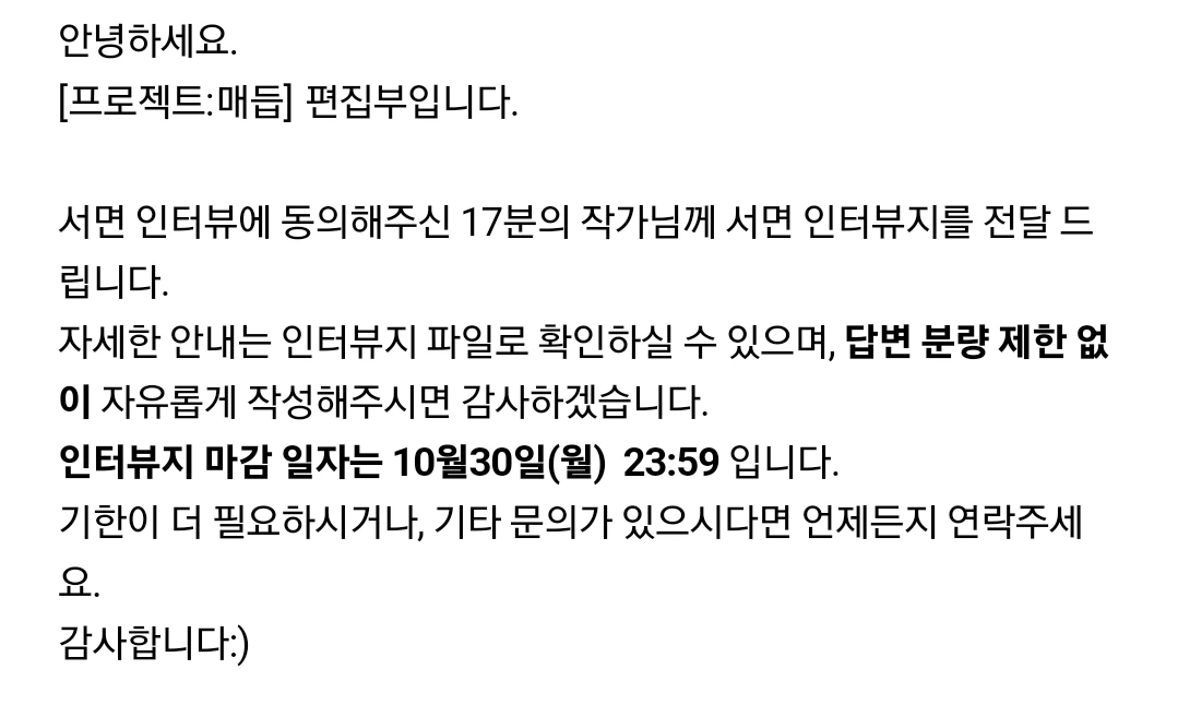 이뿐만 아니라, 저에 대한 인터뷰를 서면으로 요청하셨고