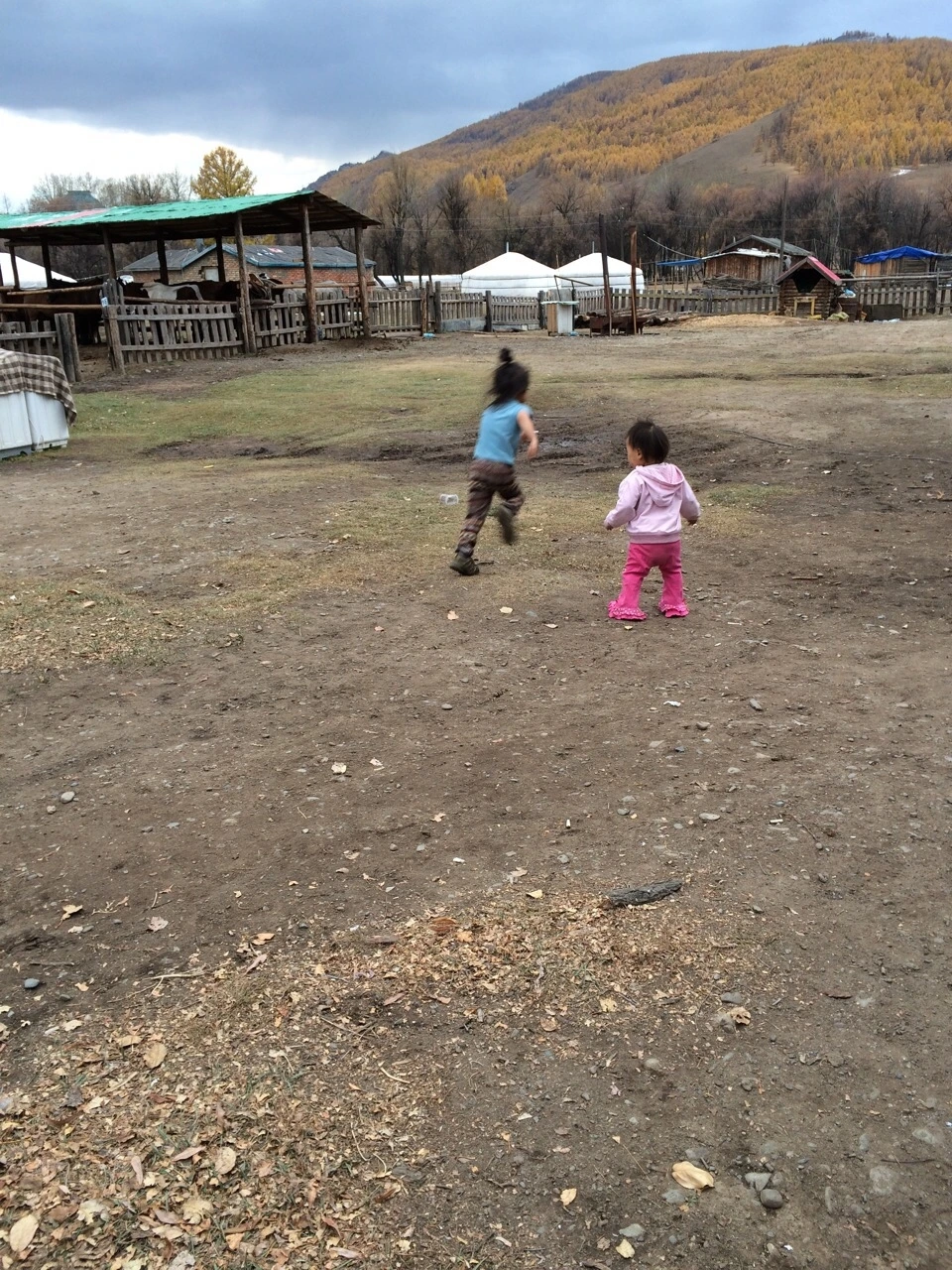 얕지만 맑은 강이 중간중간 맥을 이어나가고 있고, 길 중간중간 양과 소들이 떼를 지어 이동하며 몇 남지 않은 풀을 뜯고 있었습니다. ‘게르’라고 부르는 전통 가옥이 드문드문 보이고 그 사이에서 아이들은 코에 솜을 막은 채 한겨울 추위에도 외투 하나 없이 신나게 뛰어놀고 있습니다(나중에 들은 이야기지만, 건조한 내륙지역이다 보니 아이들이 코피를 자주 흘린다고 합니다