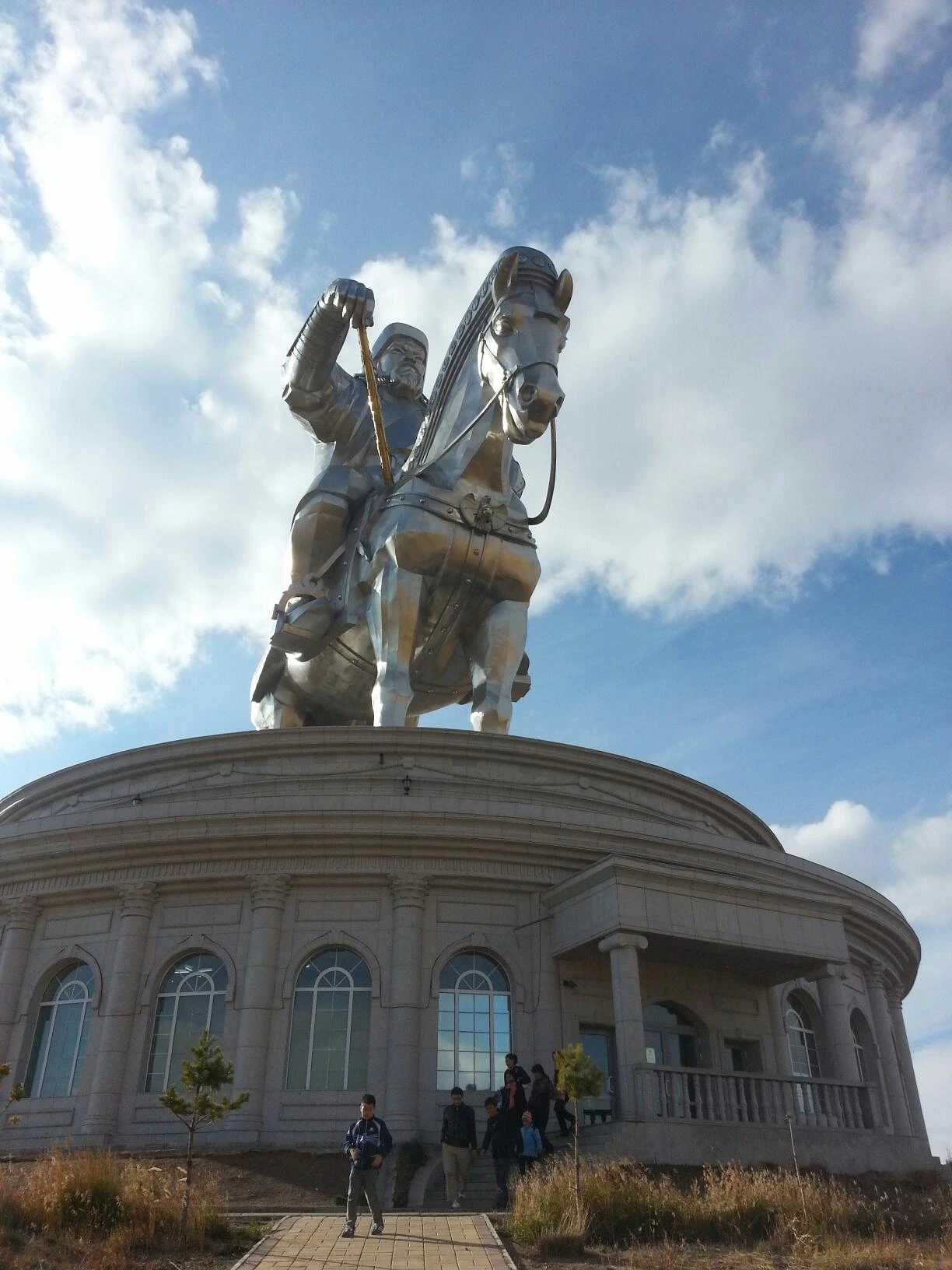 골의 울란바토르에서 2시간을 차를 타고 이동하면 ‘테를지’에 다다릅니다. 국립공원으로 지정한 곳입니다. 가는 길은 90% 이상이 비포장 상태입니다. 지도상에는 1시간 30여 분 정도면 도착한다고 되어 있지만, 가는 길목마다 만나는 소 떼나 양 떼 무리 때문에 잠시 멈춰 서 있다 보니 2시간이 넘어 도착을 하게 됩니다. 징기스칸의 나라이기에 테를지로 가는 곳곳에서 징기스칸을 수도 없이 만날 수 있습니다. 산 경사면의 초상에서도 그리고 황량한 초원 가운데 우뚝 선 그의 동상까지 말입니다.