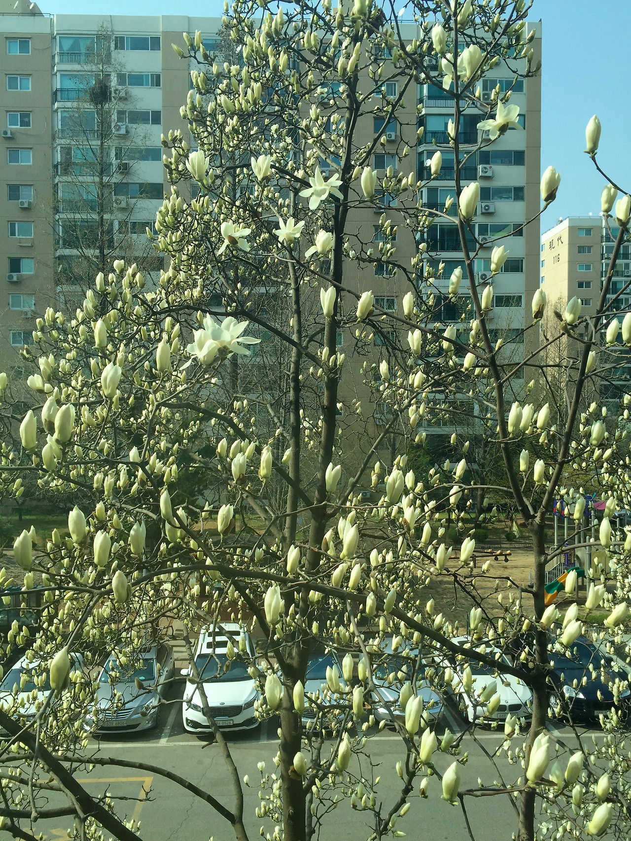 양지바른 곳에 서 있는 목련은 꽃잎들이 한껏 기지개를 켜고 있습니다. 그런데 부엌 창문 너머 손닿을 듯한 자리에 우뚝한 녀석은 햇빛을 덜 보는 탓에 아직 봉오리를 열지 못했습니다. 하지만 저는 이 친구들을 더 사랑합니다. 더딘 것 같아 보이는 이 녀석들이 늦은 봄날까지 환한 모습을 보여줄 것을 알기에 부엌 창문을 사이에 두고 마주할 때마다 오래 된 친구 같습니다. 일 년 내내 가까이 보면서 많은 것을 느끼고 배우죠.