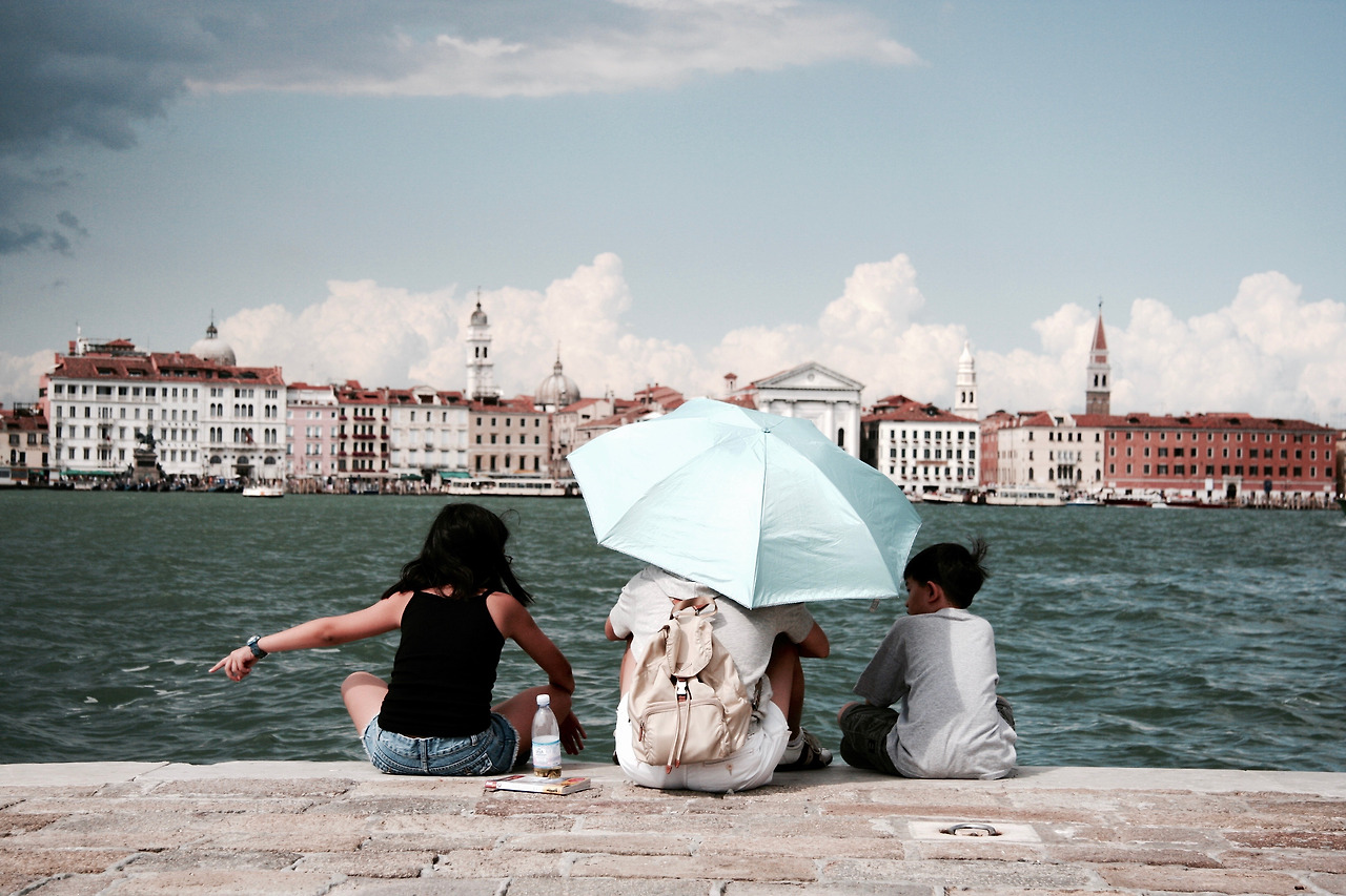 내가 가장 아끼는 여행 사진들 가운데 하나에는 아내와 아이들의 뒷모습만이 보인다. 베니스 앞바다의 산 조르지오 마조레의 부두 옆에 앉아 있다. 그곳에서 누구나 다 증명사진처럼 찍게 되는 산 마르코 광장은 안중에도 없는 듯이 보인다. 그들은 어느 곳도 애써 바라보고 있지는 않다. 그냥 쉬고 있다. 그리고 그들만이 이야기를 나누고 있다. 여행에 지친 모습이 아니라, 잠시 편안한 휴식을 취하고 있을 뿐이다. 어디론가 다시 급하게 이동할 것 같지 않다. 시원한 물도 마셨고, 가끔씩 길을 잃지 않기 위해 열어보는 여행책자도 던져 놓았다. 아들은 누나의 이야기에 귀를 기울이고 있다. 딸의 손은 무언가를 가리키고 있지만 그건 그냥 제스처인 듯하다. 양산으로 가린 햇볕을 가린 아내의 눈에는 맞은편 풍경이 새롭게 다가오고 있었을 것이다. 우린 그날 거기 꽤 오래 앉아 있었다. 몇 시까지 다시 모이라고 소리치는 여행 가이드가 없고, 다 함께 배를 타기 위해 걸음을 재촉해야 하는 단체여행이 아니었기에, 우리는 4분 쉼표를 찍는 대신 한 마디를 다 쉬어 가는 온쉼표를 찍었다. 시간은 그렇게 우리와 함께 쉬고 있었다.