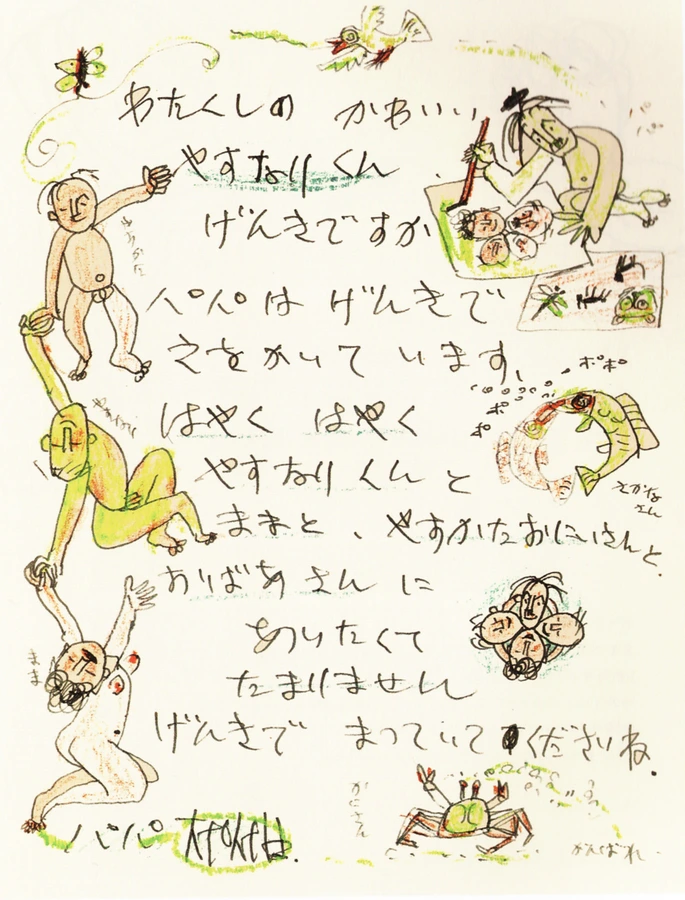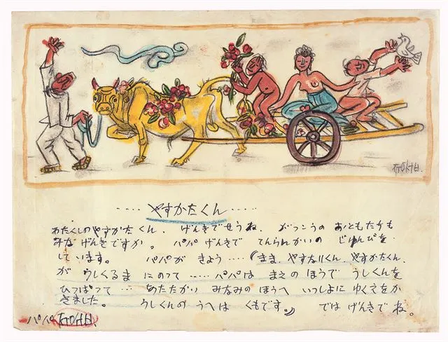 이중섭은 아내와 아이들에게 수많은 편지를 적어 보냈다. 7월 4일과 7월 9일에 보낸 편지를 잘 받았느냐고 시작하는 편지는 7월 13일에 썼다. 아내도 아이들도 그에게 답장을 쉼 없이 보냈다. 중섭은 아내에게 6월 25일 자와 6월 28일 자 편지를 잘 받았다고 썼다.