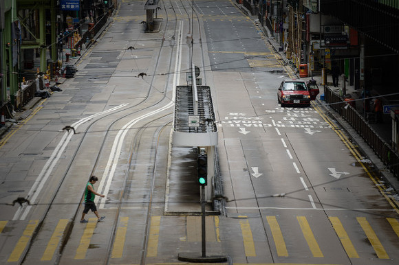 이 글을 처음 썼던 2013년 8월 14일도 홍콩은 태풍경보 8호가 발효되어 하루 종일 도시 전체가 쉬었습니다. 아래는 블룸버그(Bloomberg)가 보도한 어제의 홍콩 거리 사진 하나입니다. 비 한 방울 내리지 않고 바람도 불고 있지 않았지만 태풍경보 8호가 발효 중인 상황이기에 평소에 가장 복잡해야 할 센트럴 거리가 싹 비었습니다.