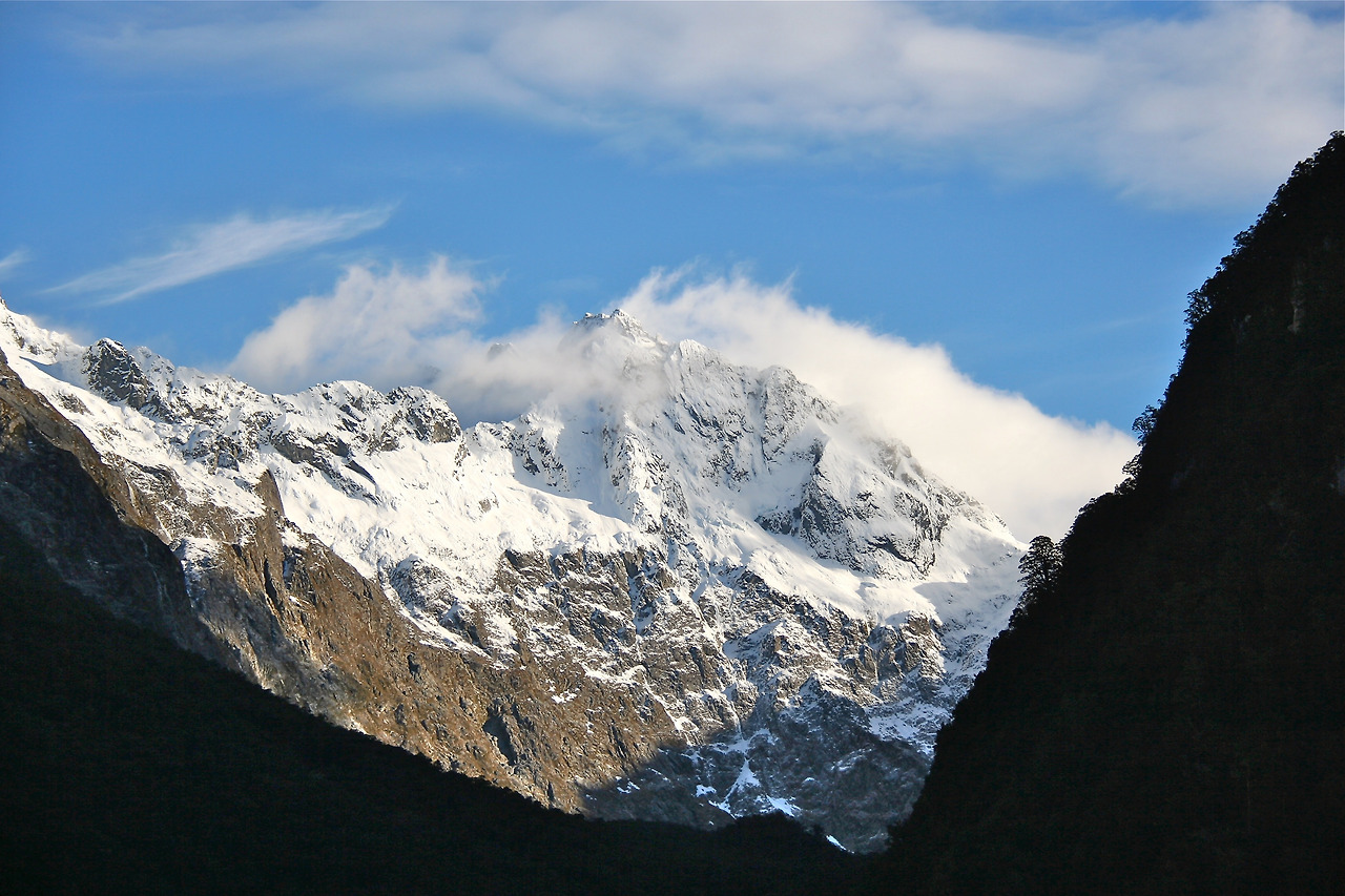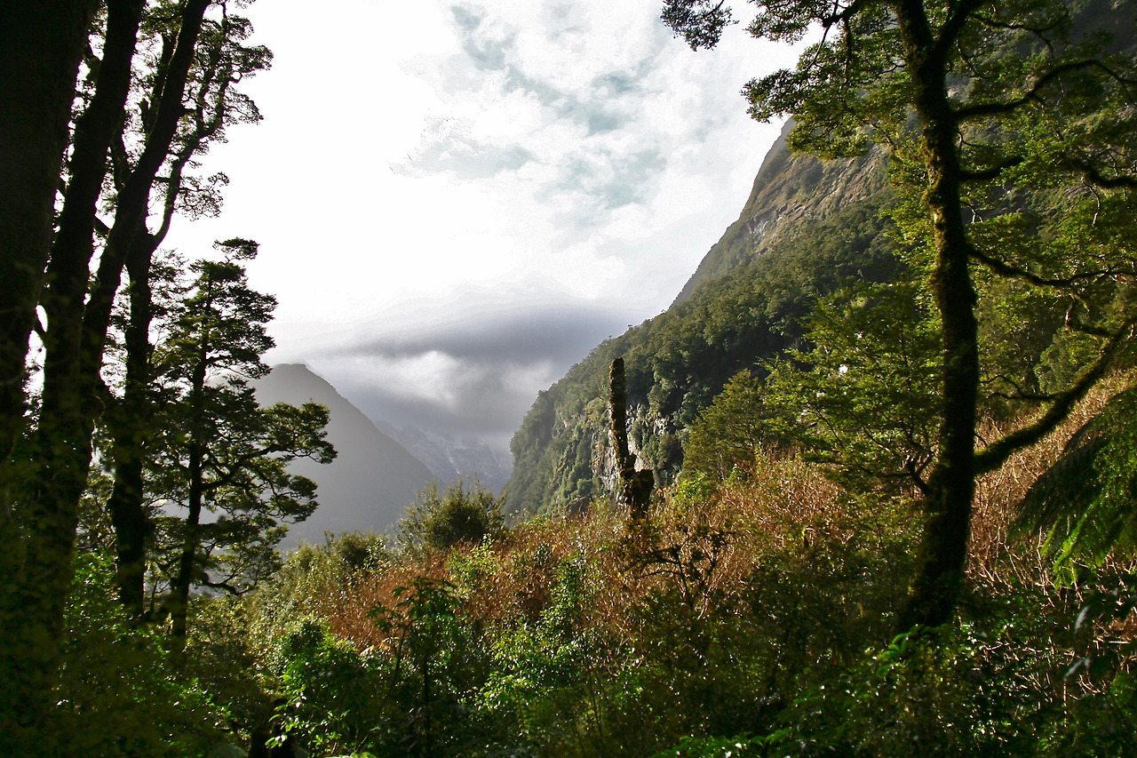 그렇게 새벽을 뚫고 안개를 헤집고 멀리 돌아와서 다시 Remarkables 산맥을 마주하면 비로소 밀포드사운드의 관문이 되는 Homer Tunnel을 만납니다. 해발 1,000m의 고지 위에 19년간의 공사 끝에 1954년에 완공된 1.2km의 호머 터널은 3분 여 간격으로 주어지는 신호에 따라 통과해야 하는 일방통행 터널입니다. 터널을 벗어나면 이제까지와는 전혀 다른 풍경이 모습을 드러냅니다. 네 시간이 넘는 운전의 피곤함이 싹 가시는, 영화관에서 보았던 ‘반지의 제왕’의 풍경이 눈앞에 펼쳐집니다. 이 대단한 풍경이 고요한 빙하의 협곡 사이로 짙푸른 바다와 마주 닿는 곳에 이르면 짧고 낮은 탄식 같은 감탄사를 내고야 맙니다. 대자연의 아름다움 앞에서 그저 작은 인간을 발견하기 때문이죠.