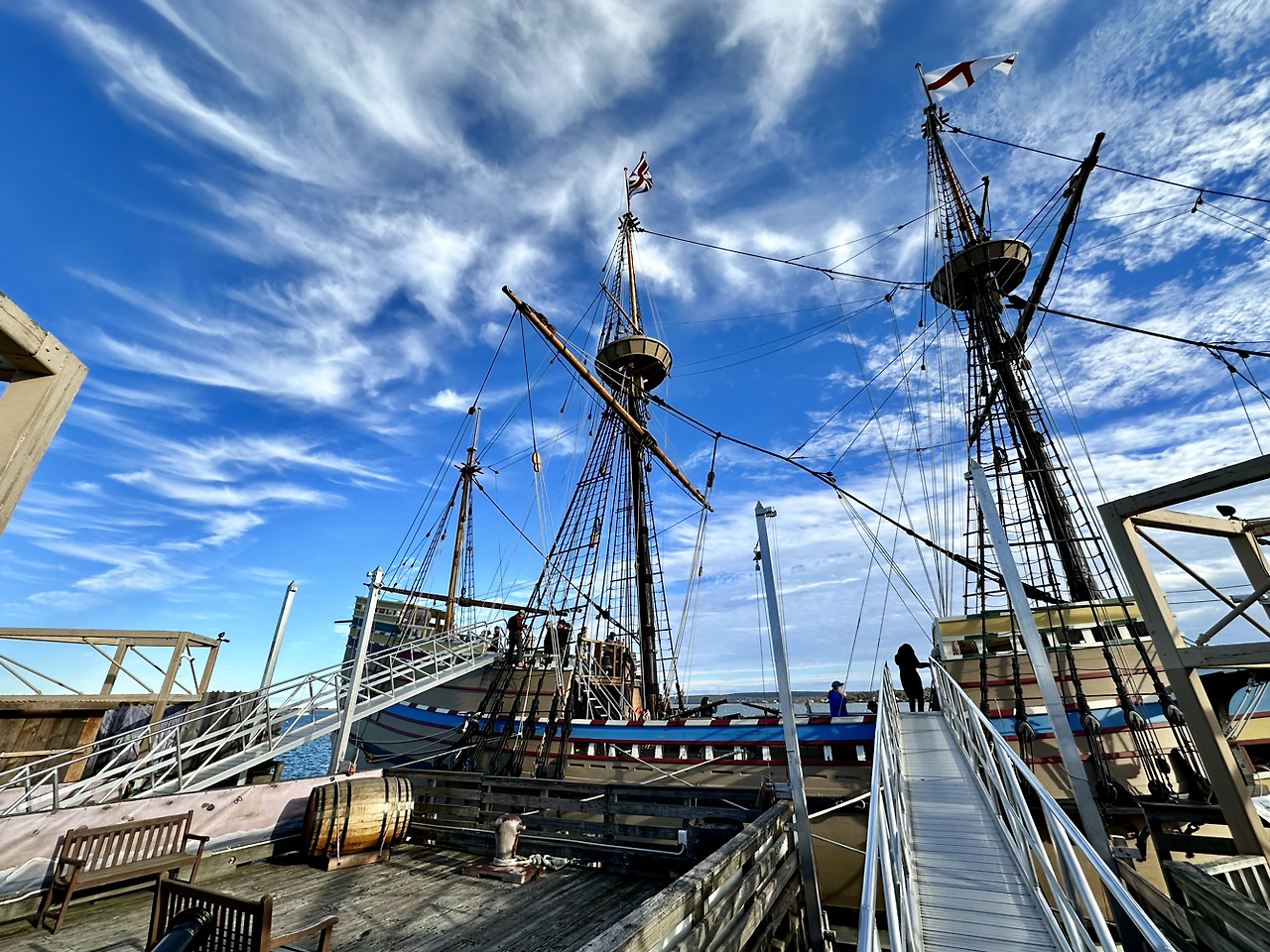 이 민속 마을에서 멀리 내려다 보이는 바닷가로 내려가면 청교들이 타고 왔다는 메이플라워호의 실물 크기 모형에 올라 타 볼 수 있다. 102명의 승객들과 꽤 많은 수의 선원들이 타고 66일간의 항해를 거쳐 대서양을 건넜다고 믿기에는 너무나 작은 크기의 배다. 앞뒤로 겨우 30여 미터쯤 되는 작은 목선이다. 그보다 천오백 년 전에 지어진 로마의 콜로세움이나 이천 년 전에 지어진 아테네의 파르테논신전과 같은 거대한 건축물을 만들어 낸 문명과 기술을 다 어디로 가고, 당시로서는 매우 큰 배에 속했다는 이런 작은 배를 타고 건너왔을까. 갑판 위에 올라서자마자 만난, 가슴팍까지 내려오는 희고 긴 턱수염을 자랑하는 해설자 톰 할아버지에게 질문을 던졌다.