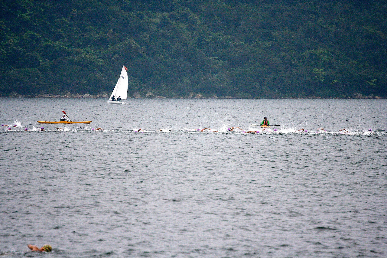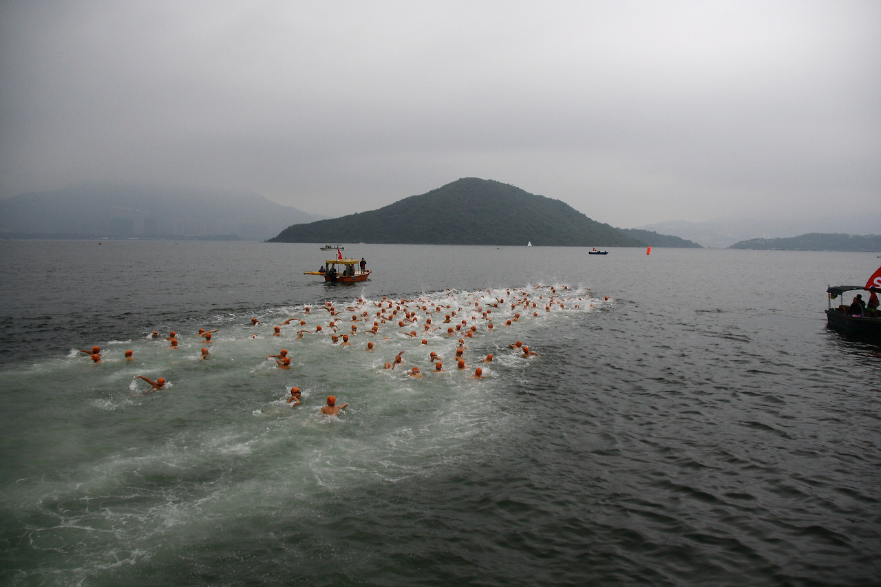 아들은 친구들과 함께 홍콩수영연맹이 주관하는 바다수영대회(Open Water Swim)에 출전하게 되었습니다. New Territory의 Tai Mei Tuk Water Sports Centre에서 해마다 한 번씩 펼쳐지는 수영대회는 바다를 가로막은 방파제 옆을 따라 조성된 2km 길이의 코스에서 벌어집니다. 그리고 이 바다는 수면 바로 아래부터 검푸르기까지 한 초록빛으로 뒤덮여 아무것도 보이지가 않습니다. 그 안에 무엇이 들어있는지 무엇이 헤엄치고 있는지 짐작하기도 어려운 바다에서 300mm 줌렌즈로도 그 끝이 잘 잡히지 않는 직사각형의 코스를 헤엄쳐야 합니다.