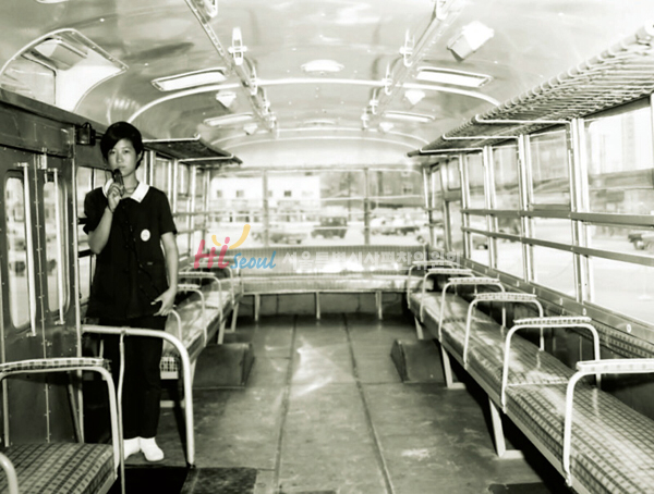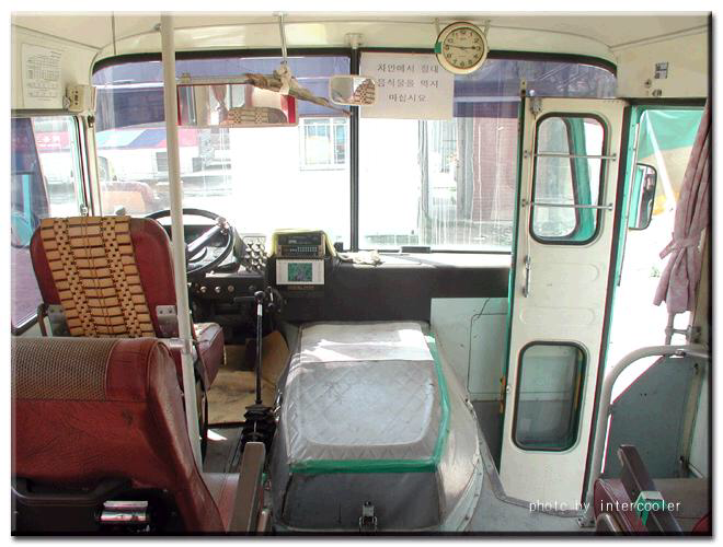 그 시절의 시내버스는 요즘의 버스와 확연히 다른 점이 몇 가지 더 있었습니다. 첫째, 버스의 엔진이 운전석 바로 옆, 그러니까 버스의 앞에 달려 있었죠. 이 엔진룸에서 매캐한 기름 냄새가 올라오면 버스 멀미를 안 하는 분들도 속이 메슥거리죠. 하지만, 거북등처럼 생긴 엔진룸이 고마울 때도 있으니 한겨울에 뜨뜻해서 걸터앉아 있으면 딱입니다. 사고 난다며 엔진룸 위에 앉지 못하도록 기둥과 막대기로 막아두기도 했는데, 그게 손잡이 역할을 해서 더 편안하게 앉아 갈 수도 있었습니다. 빈 의자가 없어서 여럿이 서서 갈 때는 모두 함께 책가방을 올려놓기도 했었죠.