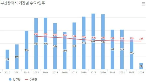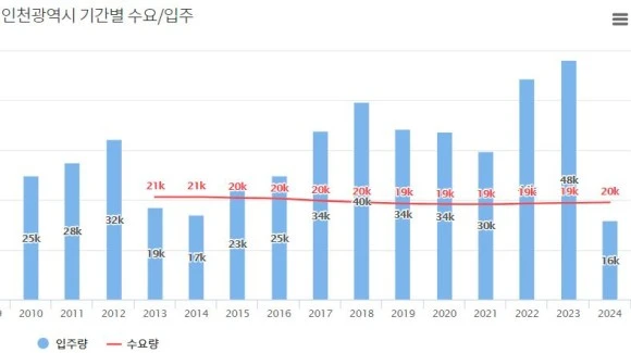 그러나 같은 기간 인천의 공급량과 수요량을 보면 공급이 수요를 훨씬 앞서고 있다.