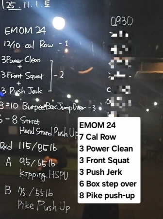 크로스핏에서 EMOM은 매 1분마다 새로운 동작을 하는 것을 의미한다.