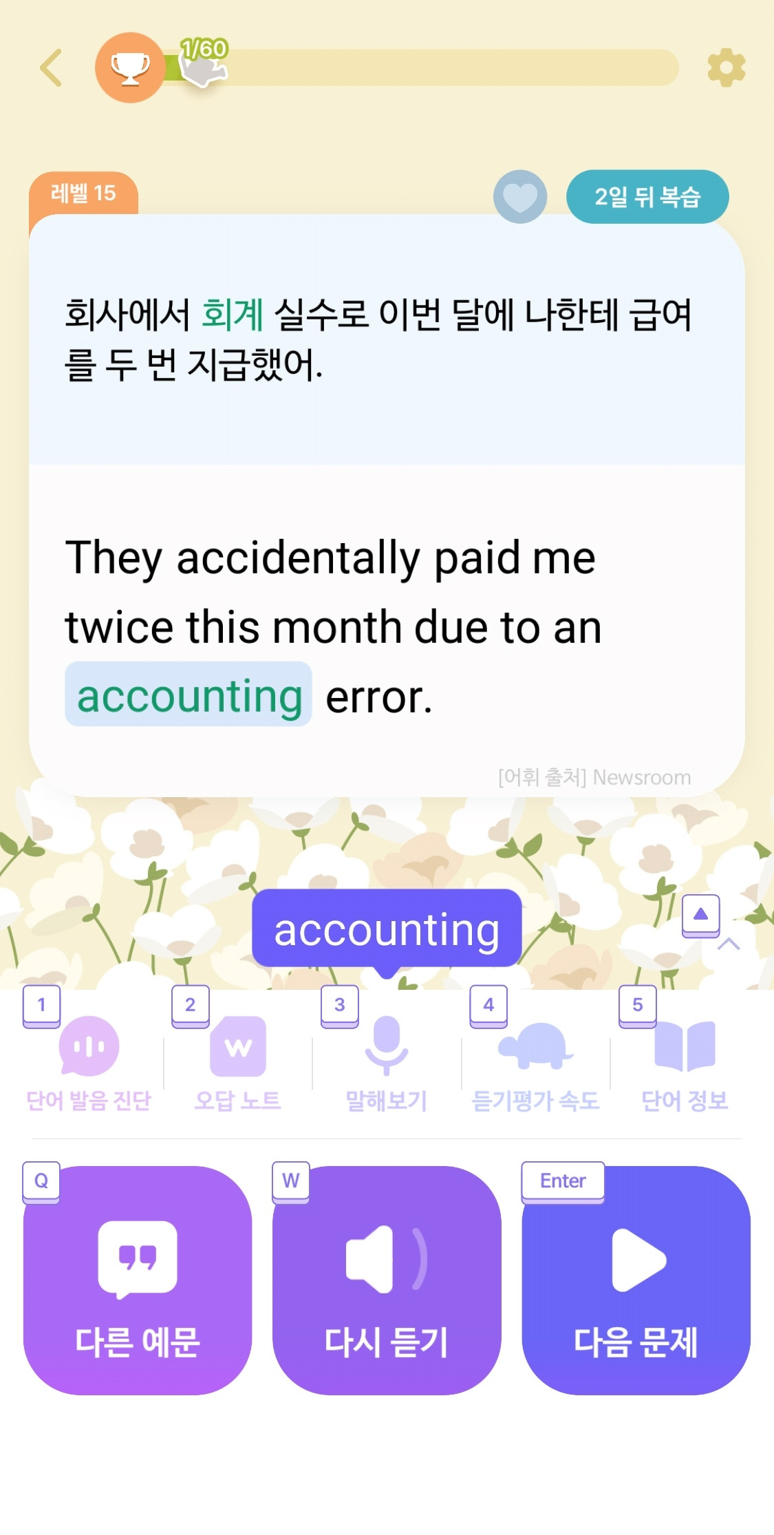 단어공부 기능 말고도 문법 기능이나 리스닝 기능도 있다. 둘 다 써봤는데, 좋다.