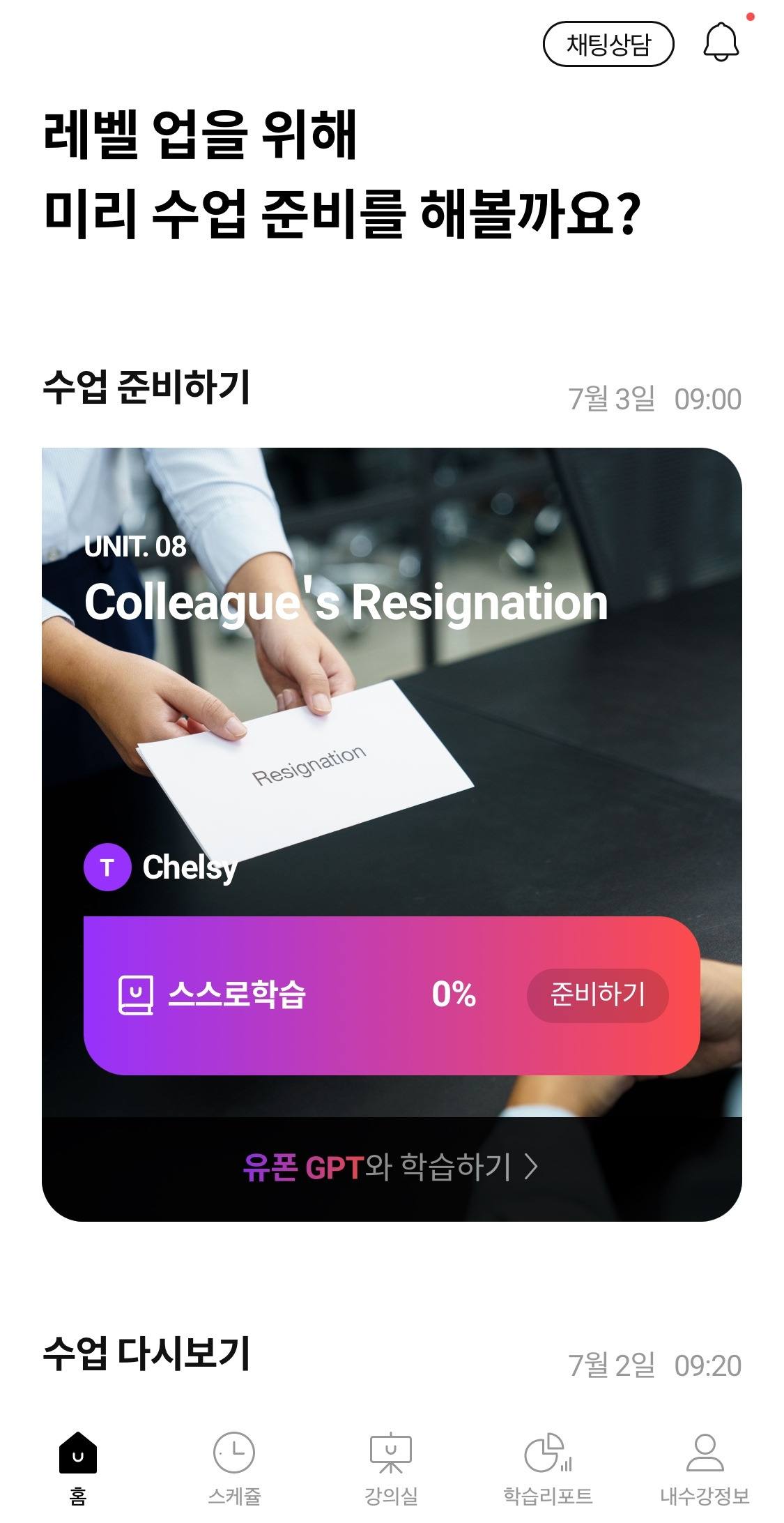 전화로 영어 회화 공부하는 패턴 자체야 비슷하겠지만 바쁜 일상에 꾸준히 할 수 있게 만들어주는 게 관건인 것 같다. 유폰은 민병철 씨의 이름값 답게(?) 수년 간의 경험으로 안정적으로 운영되고 있다. 준비된 강의도 엄청 많고, 언제든 원하는 시간에 쉽게 예약하고 쉽게 취소할 수 있는 게 한국인의 생활 패턴에 딱이다.